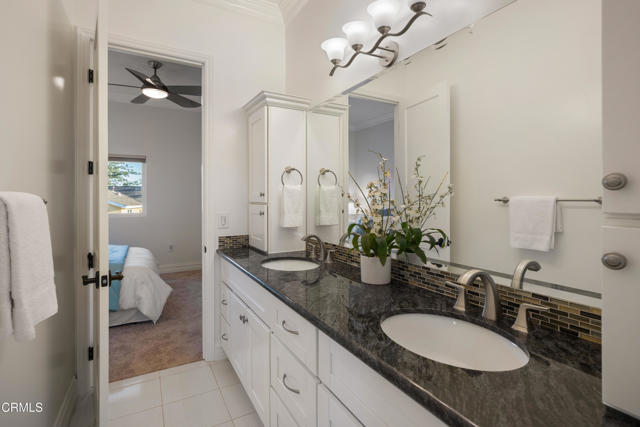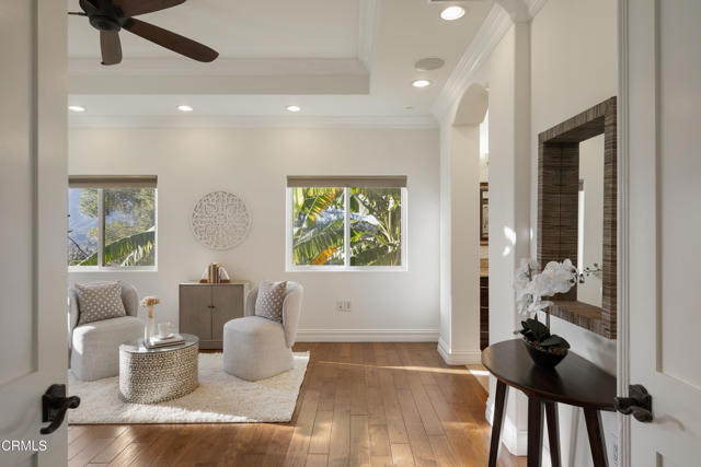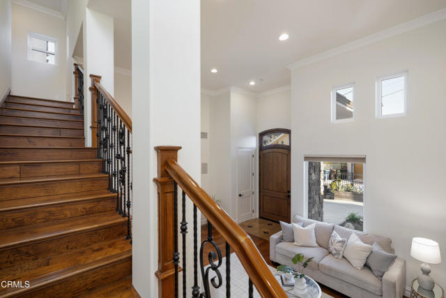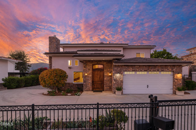 Tucked away at the end of a cul-de-sac in La Canada Flintridge, this residence offers exceptional privacy, scale & refined living. Set behind secure gated access with multiple off-street parking areas, including space for an RV or boat. The approach is softened by raised garden beds, mature landscaping & several fruit trees, creating a peaceful & welcoming arrival. A striking stone facade & covered entry lead through an oversized front door into a dramatic interior defined by vaulted ceilings, hardwood flooring & recessed lighting throughout. The living room is both elegant & inviting, featuring a gas fireplace, architectural details & generous natural light. Storage beneath the staircase, an entry closet & a central vacuum system throughout the home enhance everyday functionality. Designed for effortless entertaining, the open-concept main level layout is anchored by a formal dining room with tray ceilings & statement lighting. Arched openings lead into the expansive family room & chef's kitchen. The kitchen is the heart of the home, featuring a center island with bar seating, a 5-burner gas cooktop, stone countertops, a vegetable sink & a Jenn-Air stainless steel appliance suite. A dedicated laundry room with a utility sink, a storage room ideal for a walk-in pantry & direct access to the finished 2-car garage add convenience. Sliding glass doors from the family room lead to a private patio & grassy side yard, creating a seamless indoor-outdoor connection. The main level also includes a 3/4 bathroom, a versatile room perfect for a home office or guest bedroom & a luxurious primary suite. The primary retreat features tray ceilings, in-ceiling speakers prewired for whole-home audio & an expansive spa-inspired ensuite. Enjoy dual stone vanities, an oversized jetted soaking tub & a glass-enclosed shower with a rain shower head, handheld wand & body jets. A cedar-lined walk-in closet & private toilet room complete the suite. Upstairs, 4 generously sized bedrooms offer crown molding, ceiling fans & ample closet space. Two well-appointed Jack-and-Jill bathrooms feature quartz countertops & dual-sink vanities. An exterior storage shed & basement add versatility, while the home's prime location offers easy access to top-rated schools, nearby parks & the charming dining & shopping destinations of Montrose. This residence balances grandeur with warmth, privacy with accessibility & refined luxury with livability, an exceptional opportunity to call La Canada home.