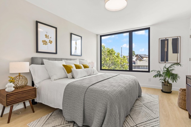 Brand new construction and Green Point Rated, this modern all electric single family home is stunning with three bedrooms, and two baths perfectly dispersed across three levels. Designed by local noted architect Mike Pitler, this home features a sleek and stylish open concept design. Located in the Glenview neighborhood, near Dimond Park and trendy eateries, noted builder Workshop1 built this collection of homes from the ground up as a small modern enclave. The main living area is set perfectly on the second floor and combines the living, dining and kitchen area in one open concept space. The minimalist modern kitchen includes sleek oak and white cabinetry as well as a stainless steel suite of appliances including an electric convection stove. Moving up a level are two comfortable bedrooms and a full bath. On the ground floor, you will find the third bedroom with an additional bathroom, laundry closet and access to the private gated patio outdoor space. With solar panels, heat pump heating and air conditioning, dedicated parking in the parking courtyard , and many more amazing features this home is not to be missed. Views: Downtown