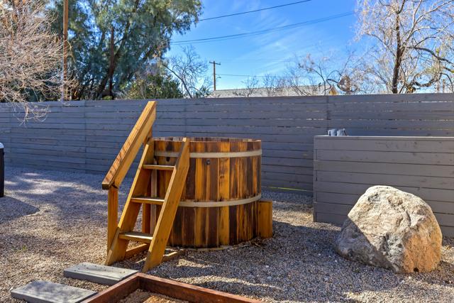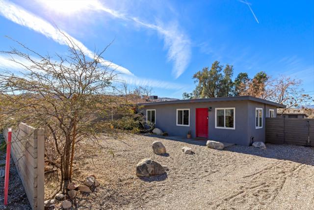 Turnkey mid-century home in the heart of Joshua Tree Village, just a short walk to popular dining, local shops, the iconic Joshua Tree Saloon, and the weekly farmers market. Joshua Tree National Park is just minutes away, offering easy access to world-class hiking, climbing, and desert exploration.Inside, the home features an open-concept layout with fresh, updated interiors designed for comfort and easy living. Two well-sized bedrooms and a stylish bathroom with a walk-in shower complete the space.The private backyard is thoughtfully designed for outdoor enjoyment, featuring a covered patio ideal for dining, an outdoor shower, jacuzzi, and cold plunge perfect for relaxing after a day exploring in the park. Laundry is conveniently located in a separate outdoor accessory building that also provides generous storage.Offered fully furnished and ready for immediate enjoyment, this property is an ideal full-time residence, weekend escape, or turnkey short-term rental investment in one of Joshua Tree's most walkable and desirable locations.