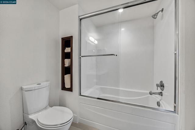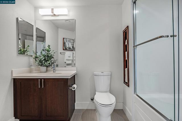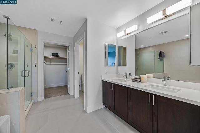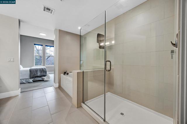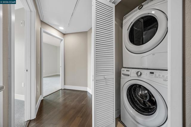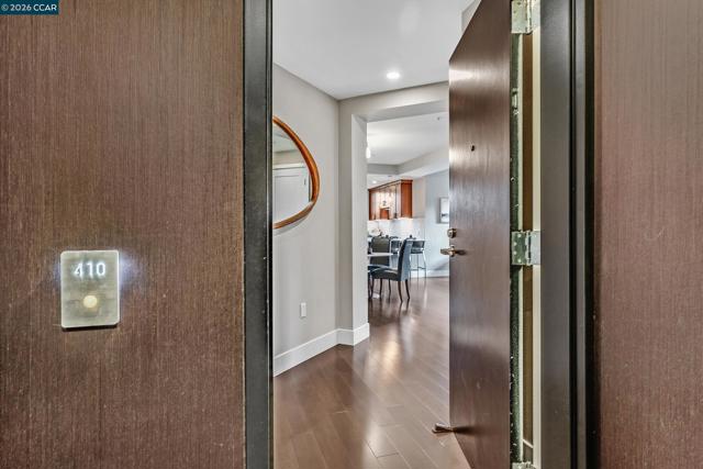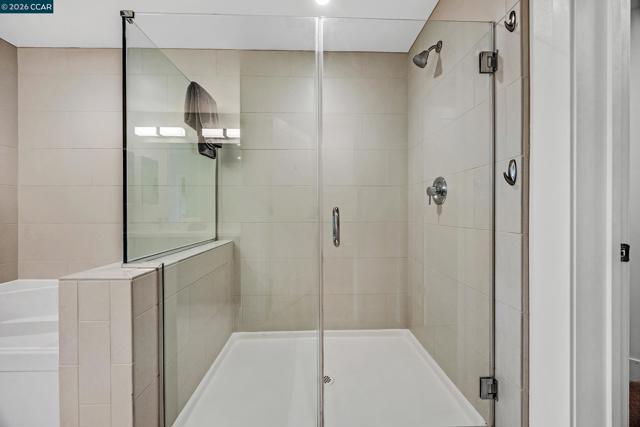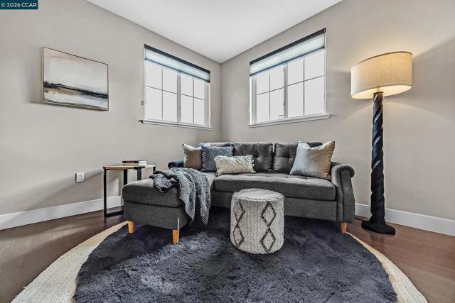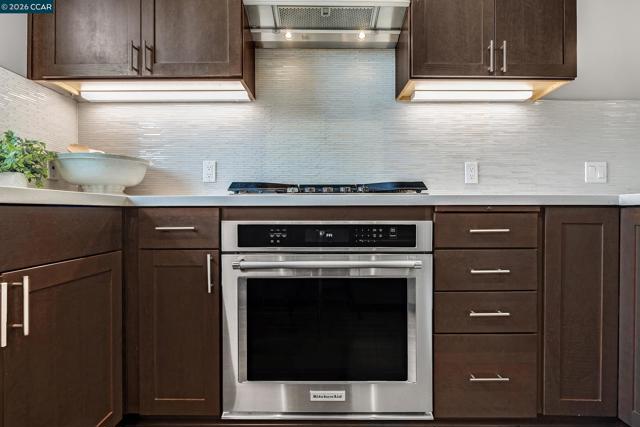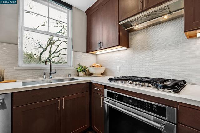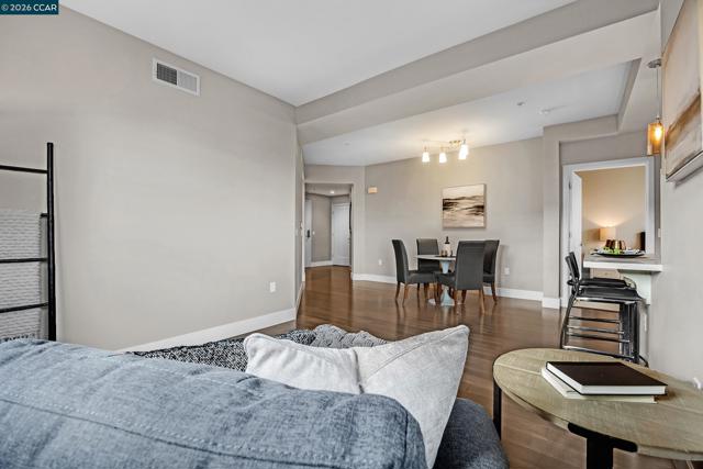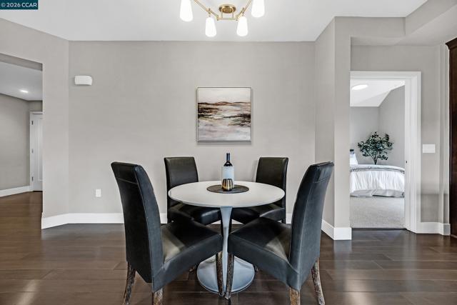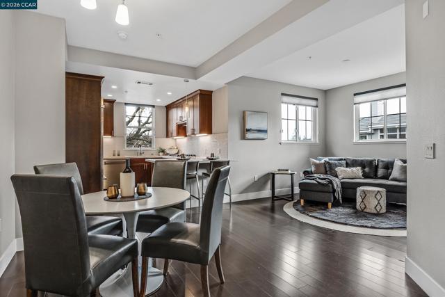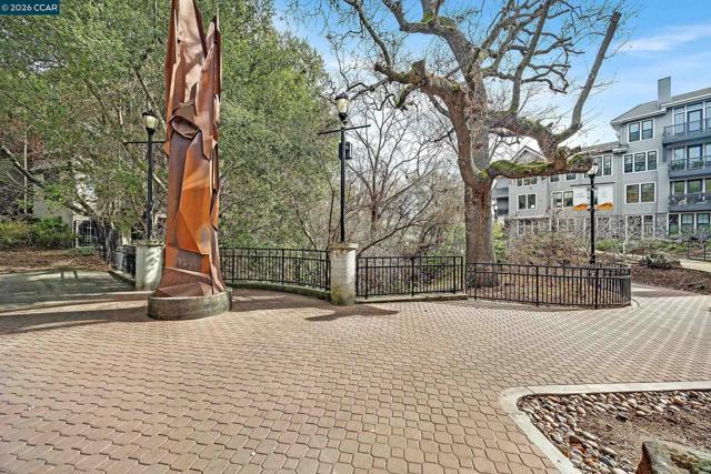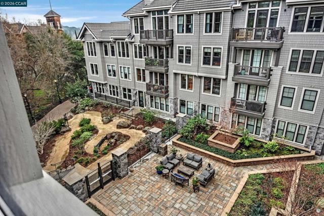 Rarely available top floor luxury condo offering three bedrooms and two baths, spanning 1,423 square feet in the heart of downtown Lafayette, delivering an exceptional blend of style, comfort and convenience. This fourth floor residence is set within a peaceful, well maintained complex featuring secure keypad building access, an entertainment room on the first floor and a beautifully manicured courtyard. The building offers secured entry along with gated underground parking with two designated spaces. The light filled interior includes central heat and air, stunning hardwood floors, plush carpeted bedrooms, recessed lighting and detailed baseboards throughout. The chef inspired kitchen is equipped with stainless steel appliances, a five-burner gas range, dishwasher, striking countertops, designer backsplash, breakfast bar seating and abundant cabinetry. Oversized bedrooms provide generous living space, while the expansive primary suite connects to a spa-like en-suite with soaking tub, separate shower, dual vanities and a large walk in closet. Additional highlights include an in-unit washer and dryer, close to top rated Lafayette schools and BART, plus quick access to Highways 24 and 680 for effortless commuting and everyday living.