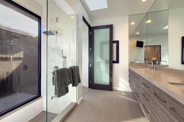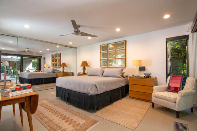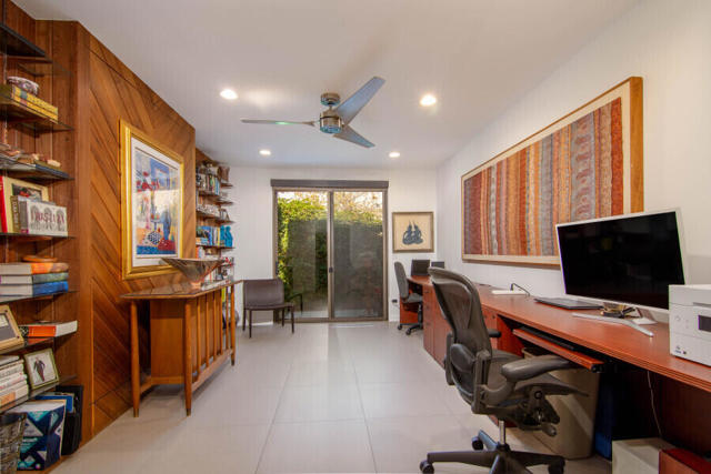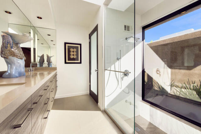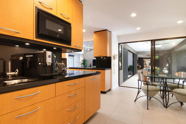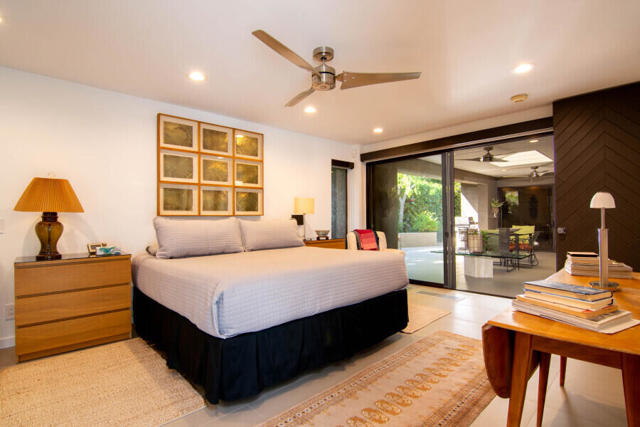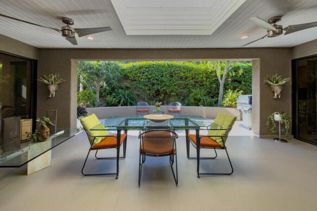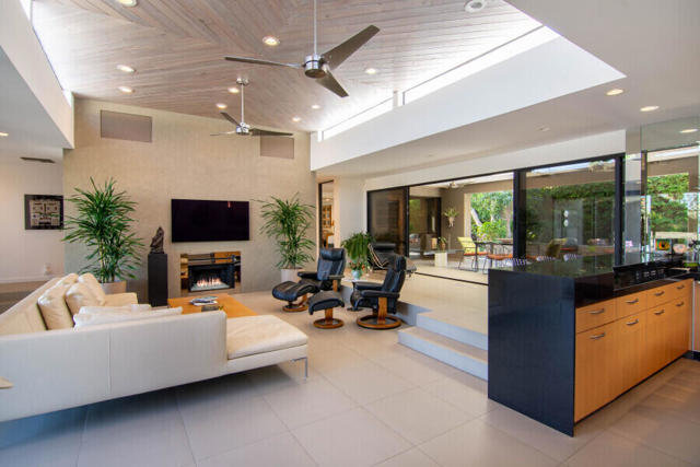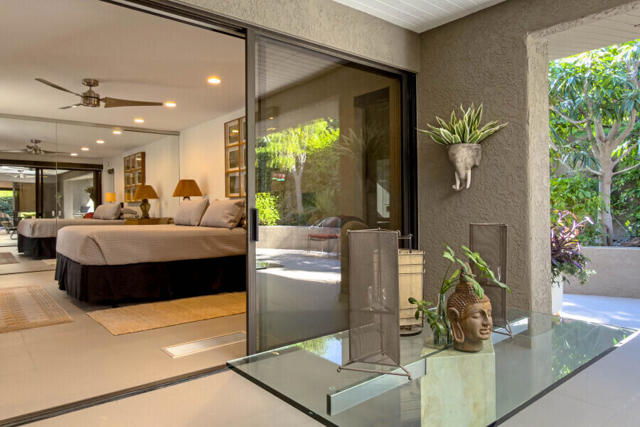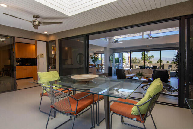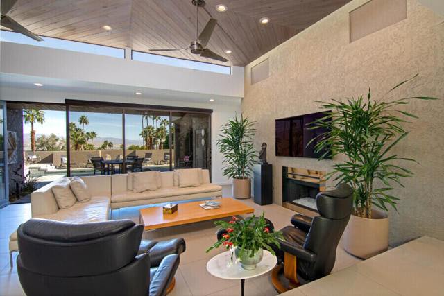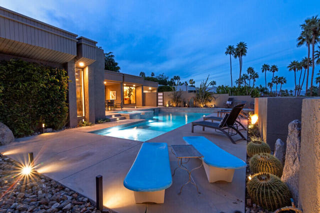 First time on the market 40 years! This modern residence in Chino Canyon's coveted Little Tuscany enclave is a serene oasis of privacy, showcasing sweeping valley and mountain views. Beautifully maintained and thoughtfully updated, the home features high ceilings, recessed lighting, smartly remodeled bathrooms, and a chef's kitchen designed for both daily living and effortless entertaining.Sleek porcelain tile floors flow seamlessly to expansive indoor-outdoor living and dining areas. Double doors open to a large covered patio and lushly landscaped west-facing yard, bask in the east-facing pool and spa and enjoy tranquil morning light and dramatic mountain backdrops. A generous Pebble Tec pool, spa, and gas fire pit create an inviting setting for relaxation and entertaining. Pool and spa feature newer equipment with both chlorine and optional saltwater filtration systems.The versatile floor plan offers two ensuite bedrooms, a third bedroom with adjacent bath, and a fourth office or bedroom with a built-in Murphy bed. The primary carpeted retreat is just steps from the pool and spa, enhancing the home's effortless indoor-outdoor lifestyle.The gourmet kitchen is outfitted with black granite countertops, a new six-burner Wi-Fi-controlled JennAir range, Sub-Zero refrigerator, Miele dishwasher, and a bar with built-in ice maker. A secondary caterer's kitchen located in the attached two-car garage further elevates the home's entertainer appeal.Practical luxuries include 64 owned solar panels across two systems with a Tesla backup battery, water softener, two central A/C units, two evaporative coolers, a silicone-protected foam roof, intercom electric secured entry gate, and security cameras.Perfectly designed for relaxed Palm Springs living, this Chino Canyon gem blends modern comfort, timeless appeal, and exceptional views in one of the city's most desirable neighborhoods.