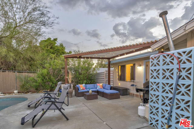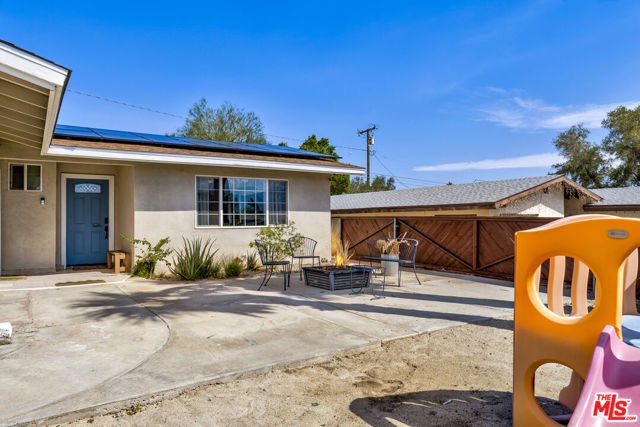Welcome to this beautiful, spacious home with large size bedrooms, full kitchen, remodeled throughout, and an amazing swimming pool! Enjoy sunsets over the San Jacinto mountains from the front patio, or entertain guests at the back patio by the BBQ, pool, and the private movie/media room. Sitting on a quiet street, walking distance to some nice trails up into the desert hills; a perfect place to call home either permanently or when you need to get away. Pool was built in 2021, completely permitted. The pool is gas heated and features a fountain system which can be turned on or off. Kids love running through the fountains! The house features a side yard with separate entrance to the "guest suite". The house comes completely furnished with stainless steel appliances- refrigerator, dishwasher, stove, microwave, and more. Central AC and heat keeps the home warm in the winter and cool in the summer. The garage features tons of storage and is well maintained. More storage sheds are in the backyard by the pool house. A fully paid for security system with 4 different cameras around the house provide that extra security protection. 18 solar panels help pay the bills, the solar system is completely paid for and comes to the new owner. A well maintained and landscaped front and back yards are watered by sprinkler systems, as well as exterior lighting to make the scenes bright. The house is currently being used as a short term vacation rental (Airbnb, Vrbo) via permit. This permit is 100% transferrable to the new owner, but must be done by the new owner's effort. Current owner will assist in the transfer as possible. The house is booked until the end of April, any reservations may be transferred to the new owners, or cancelled. Welcome to your new home, or investment, either way this place is not to be missed!