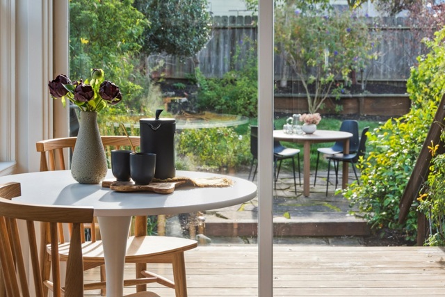Nestled on one of Oakland’s most charming streets, this single-level, light-filled California bungalow radiates character and style. Lovingly maintained by an architect, this 2 bedroom, 1.5 bath home spans 1,153 SF and showcases thoughtful updates with an artistic touch. Step into the inviting living room, where a large picture window floods the space with natural light and frames the beautifully landscaped front yard. A cozy fireplace and built-in shelves add warmth and timeless charm. The dining room serves as the heart of the home, offering effortless flow to the bedrooms and an updated bath. The versatile kitchen adapts to your lifestyle, whether for casual meals, a home office nook, or a space for conversations. A half bath and laundry room are conveniently located nearby, and sliding doors lead to a small deck overlooking the stunning backyard. The backyard is a private oasis, featuring vibrant blooms, pollinator-friendly plants, fruit trees, multiple patios, and cozy gathering spots—perfect for relaxing or entertaining year-round. A spacious garage with architectural plans for an ADU conversion offers endless possibilities. Situated near Highway 580 and public transit, this gem keeps you connected to all Oakland has to offer. Come see it and fall in love!