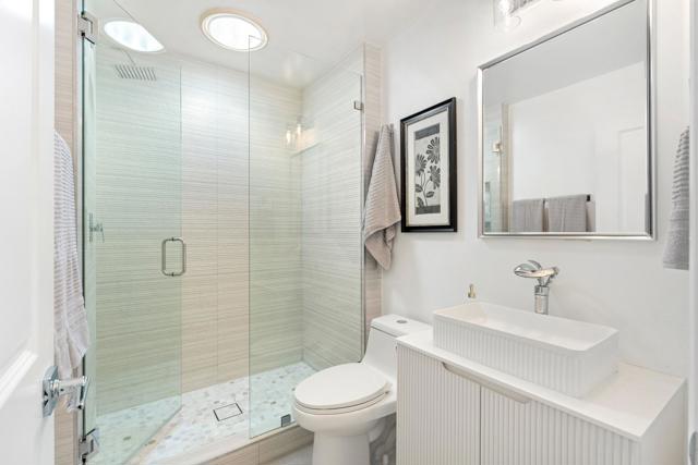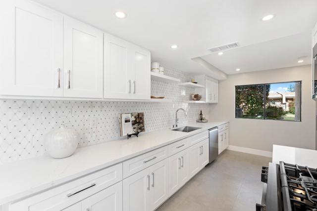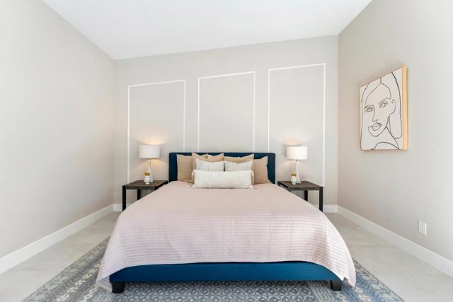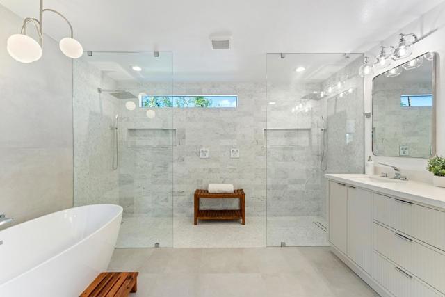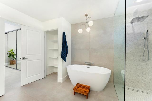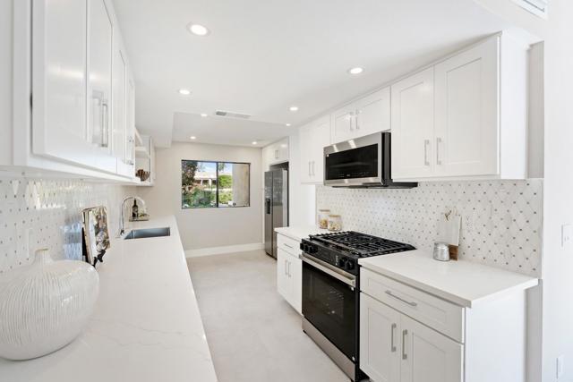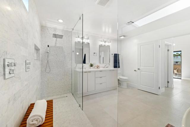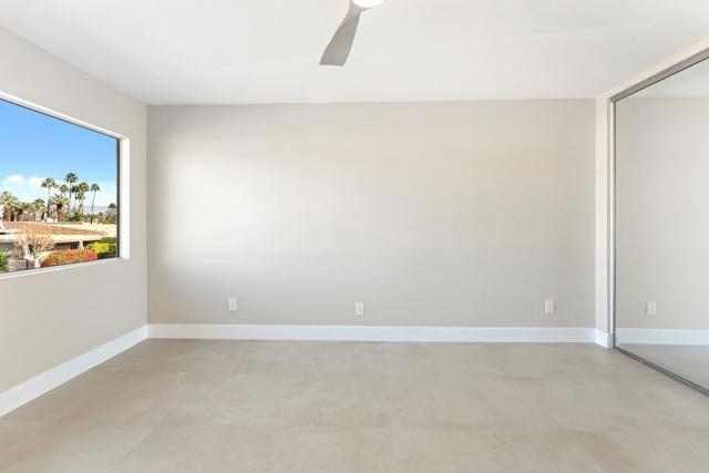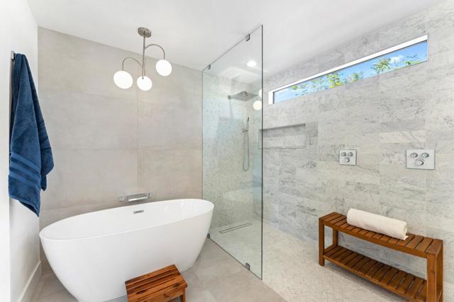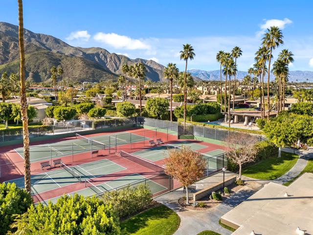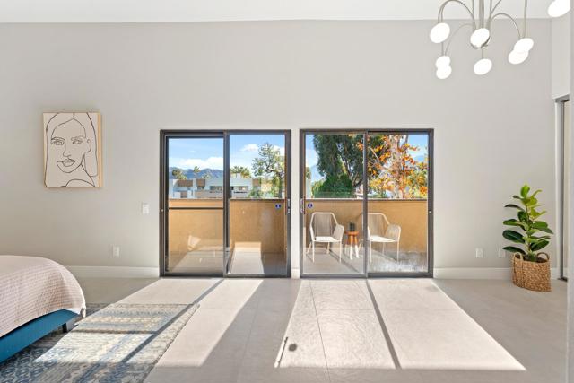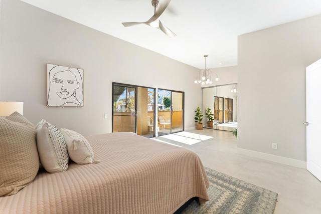 Situated within the iconic Rose Garden community, this recently and completely remodeled home showcases the enduring mid-century modern architecture of renowned architect Donald Wexler paired with thoughtful contemporary finishes. FEE Simple - you OWN the land! Rose Garden is a low-density, resort-style enclave spanning approximately 14 beautifully landscaped acres in a prime central Palm Springs location. Soaring vaulted ceilings and expansive glass fill the home with natural light while framing mountain views and creating the effortless indoor-outdoor flow Palm Springs is known for. Private balconies provide scenic mountain vistas, and a stunning newly designed tiled modern electric fireplace anchors the living space. The interior remodel includes all new kitchen cabinetry and vanities, a striking accent wall in the powder room, and both bathrooms fully redesigned and remodeled with modern finishes. The primary bathroom is a standout feature, offering a spacious walk-in shower with dual shower heads, dramatic marble-tiled walls and floors, and a sleek freestanding soaking tub, creating a true resort-style retreat. Multiple outdoor living spaces offer flexibility for relaxing, entertaining, or enjoying the desert surroundings. Community amenities rival those of a private resort and include two swimming pools heated from October through May 1, three spas that are heated year-round, one tennis court, and four pickleball courts, all set among lush greenbelts and walking paths. HOA dues cover exterior insurance, maintenance of outside structures and roofs, landscaping, common areas and amenities, management fees, reserve contributions, and bulk cable and WiFi service. The community is pet-friendly and ideally located just minutes from downtown Palm Springs' dining, shopping, and entertainment. Whether used as a full-time residence, seasonal retreat, or long-term investment, this home offers a rare opportunity to own a beautifully updated property in one of Palm Springs' most celebrated architectural communities.