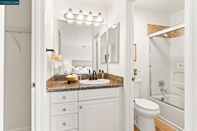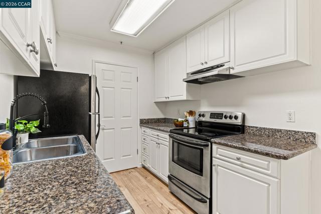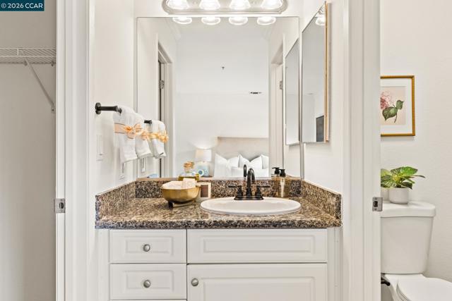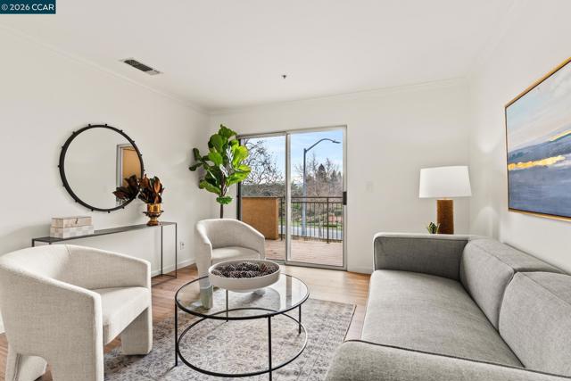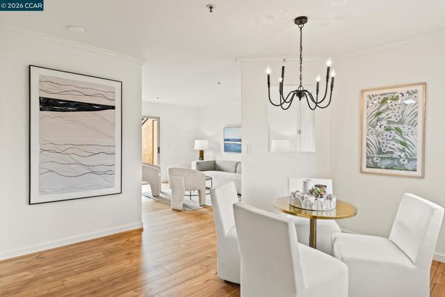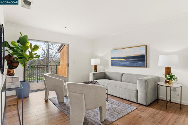 Experience refined living in this meticulously updated 2BD/2BA residence at 440 Bollinger Canyon Lane. This upper-level unit features a modern aesthetic with fresh interior paint and brand-new luxury vinyl plank flooring throughout. The galley kitchen is move-in ready, equipped with sleek white cabinetry, granite countertops, and stainless appliances. Enjoy an open-concept dining area that flows onto a private balcony with rare, direct views of the Bollinger Canyon Falls. Perfectly positioned for an active lifestyle, the property is situated directly behind Club Sport and is moments from Central Park, Lake Annabelle, and the upscale dining/retail at City Center Bishop Ranch (The Lot). Benefit from proximity to top-rated San Ramon schools, championship golf, and tennis courts. Unit includes two spacious bedrooms with generous natural light. A premier opportunity for sophisticated living in the heart of San Ramon.