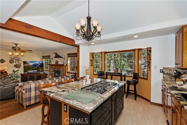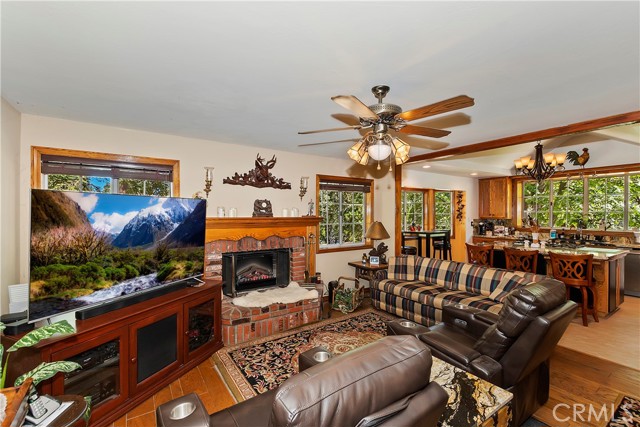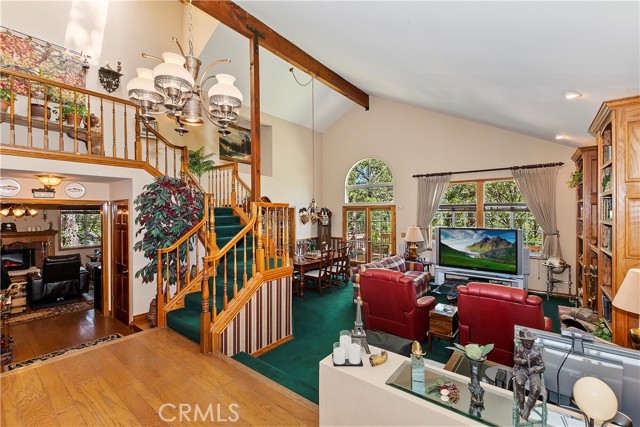 Discover Enchanted Forest Living! Nestled in the pristine Enchanted Forest Estates, this home offers a perfect blend of comfort and natural beauty. As you approach, the babbling brook water feature welcomes you, and the inviting covered front porch sets the tone for tranquil living. Step inside to the main floor and you immediately notice the impressive vaulted ceilings, a spacious living room with built-in bookcases surrounding the cozy fireplace, the dining area, and the backyard forest flooding through the windows. The updated kitchen boasts granite countertops, the center island, a breakfast bar, and the dining bay, perfect for casual dining. A separate family room/den with a second fireplace provides additional space for relaxation, while the game room/lounge with a pool table and seating area offers plenty of entertainment options. The main level also features a half bath, the laundry room, and 3 car garage access with built-in cabinets and a bonus workshop. Head upstairs and the primary suite awaits with a walk-in closet and luxurious bathroom, complete with dual sinks, a soaking tub, and a separate walk-in shower. Two additional bedrooms and the other full bathroom complete the upper level. Ready to go outside? The relaxing back deck overlooks a forested setting, giving you that sense of seclusion, while fruit trees closely loom, and peek-a-boo valley views add to the property's charm. Modern conveniences include a whole house 22kw Generac generator and air conditioning, ensuring year-round comfort. This great location is also centralized around many mountain gems including Snow Valley, Sky Park at Santa's Village, Lake Arrowhead Village, Running Springs town with the seasonal farmers market, and for those commuters, there is easy access to Hwy 330. With ample level parking and the serenity of forest living, this home seamlessly combines modern amenities with natural beauty. Schedule your viewing today and experience the enchantment for yourself.