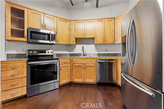 Located in the heart of Downtown Los Angeles, Unit 1109 at the historic Shybary Grand Lofts offers classic industrial loft living in one of DTLA’s most sought after buildings. This residence is set inside a beautifully restored 1920s Beaux Arts building in the Historic Core and Gallery Row, surrounded by dining, shopping, entertainment, and transit. The open concept loft features dramatic high ceilings, exposed concrete beams, and polished concrete floors, creating a true urban loft aesthetic. The kitchen is equipped with stainless steel appliances, granite or porcelain countertops, and modern cabinetry. The bathroom includes an oversized oval soaking tub, creating a relaxing retreat. Additional highlights include in unit washer and dryer, central air and heat, and high speed internet and cable. Shybary Grand Lofts amenities include a rooftop pool and spa, fitness center, optional valet parking available for an additional fee, and on site security. Short term rentals including Airbnb are currently permitted in the building, offering strong flexibility for investors and owner occupants. This location places you at the center of Downtown Los Angeles activity with world class entertainment just minutes away. Sports, concerts, and major touring events regularly take place at Crypto.com Arena, while cultural gatherings and city events are hosted throughout the year near Pershing Square. The building is near the Metro with easy access to major freeways and is walking distance to popular restaurants, theaters, parks, and cultural landmarks. Ideal for an owner occupant or investor, Unit 1109 offers historic charm, modern upgrades, and an unbeatable Downtown Los Angeles location at an accessible price point for loft living.