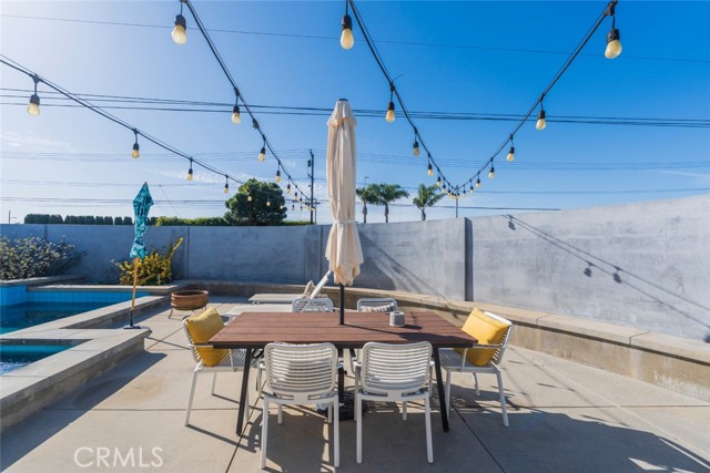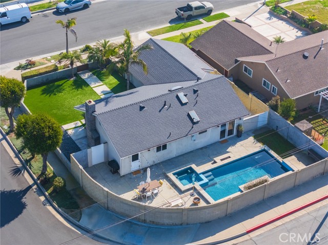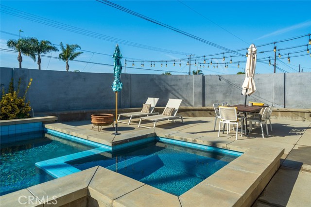 Stylish Dutch Haven single-story pool home in the highly desirable Hopeview tract. Open floor plan filled with natural light, an upgraded kitchen with quartz countertops and custom cabinetry, luxury vinyl plank flooring, skylights, central A/C, forced-air heat, and a new roof. The remodeled primary bathroom features a sleek walk-in shower. The finished garage offers laundry area with sink, custom cabinets, slate tile flooring, drywall finish, and EV charging. Enjoy a concrete-fenced front yard with artificial grass and a private backyard designed for entertaining with a saltwater pool + jacuzzi, fountain, and fire pit. Steps to the wetlands complete the lifestyle.