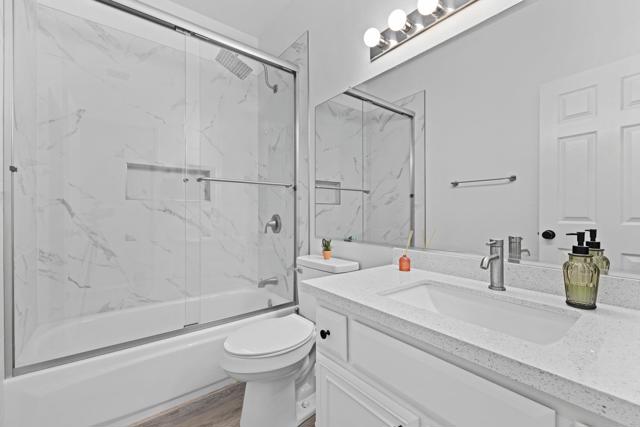 Coveted single-level living on one of the largest lots in Discovery Hills! This is the home you’ve been waiting for...Set on an expansive .34-acre (14,771 sq ft) lot with no HOA, this rare opportunity offers space, privacy, and endless potential for an ADU, pool, or dream backyard retreat in one of San Marcos’ most sought-after neighborhoods. This beautifully updated 3 bedroom, 2 bath home spans approximately 1,680 sq ft and has been thoughtfully improved from top to bottom. Highlights include brand new vinyl plank flooring throughout, all new windows and sliding patio doors, and a light-filled open layout that seamlessly connects the living, dining, and kitchen spaces- perfect for everyday living and entertaining. The kitchen features new appliances, quartz counters, ample cabinetry, and views out to the backyard, while both bathrooms have been fully remodeled with new tile showers and quartz countertops, bringing a clean, modern feel to this single-level home. Additional upgrades include new plumbing from the street water meter to the home, new water heater, epoxy-coated garage floors, and added rain gutters. Step outside and enjoy the extensive new hardscape, including front and back patios, walkways, fire pit, and a BBQ island - all designed to maximize outdoor living. The brand new fencing, front privacy wall, and added landscape drainage system enhance both usability and peace of mind on this oversized lot. Located just moments from Discovery Lake, scenic walking trails, parks, and highly regarded schools, Discovery Hills is prized for its sense of community, convenience, and access to shopping, dining, and freeway connections-all without HOA restrictions! Solar is leased and contributes to energy efficiency. This is a rare combination of single-level living, meaningful upgrades, and an oversized lot in an established neighborhood-a true must-see. Zoned for top rated schools including Discovery Elementary, San Elijo Middle and San Marcos High. NO HOA & LOW MELLO ROOS. This is a must see! Solar system is lease, buyers to assume the lease, current payment about $90 per month, system is about 3.9kW. Room dimensions & square footage are approximate, per builder & assessor's record. Note that school district and school allocation can always change.