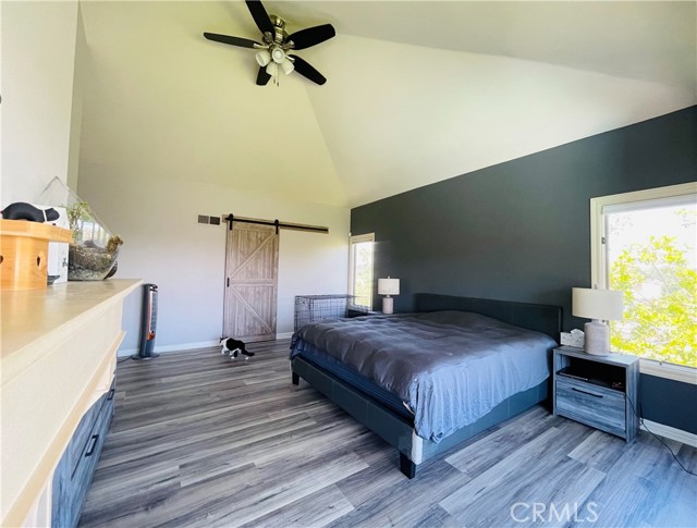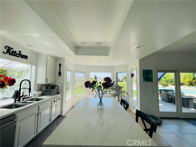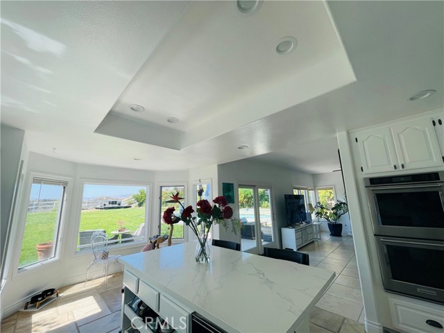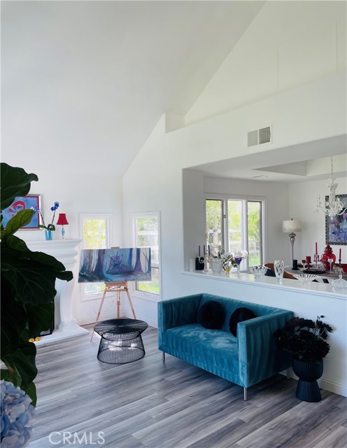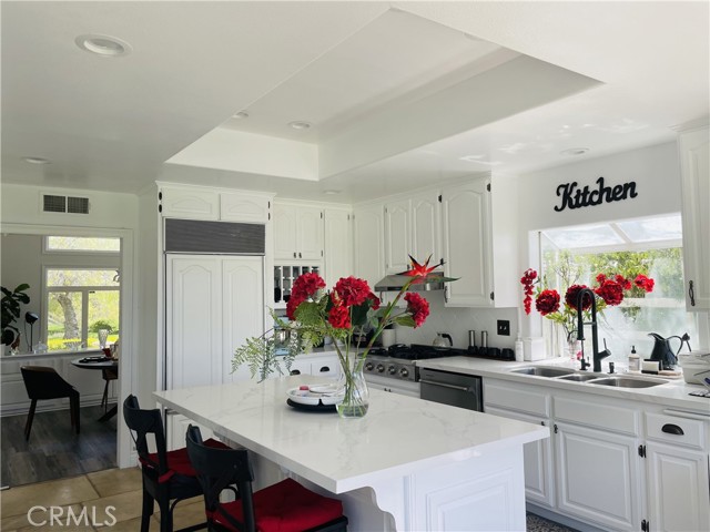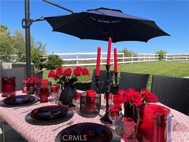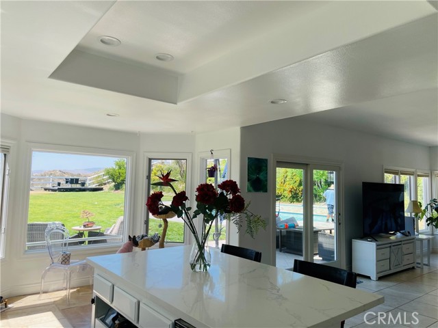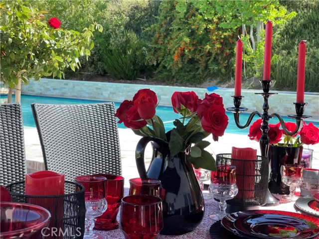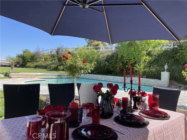 Renovated residence on an expansive private lot with open mountain and valley views, including sunsets over the Sierra Pelona Mountains. The home offers extensive interior upgrades and is surrounded by broad grassy garden areas, mature trees, and a pool integrated into the landscape. Front and back gardens feature persimmon, pomegranate, and jujube fruit trees, along with roses, rosemary, palms, and lush planting throughout. Large canopy trees provide natural shade and cooling across the outdoor spaces. Interior updates include new modern flooring and a redesigned staircase with updated railing, steps, and side skirts. Living areas are well defined with strong flow and direct access to the backyard and pool. The kitchen is centered around a substantial island with generous storage and prep space and is equipped with a large Sub-Zero refrigerator, allowing easy circulation between kitchen, dining, and living areas. The home offers excellent storage, with closets in every bedroom and built-in cabinetry throughout. The primary suite includes a fully renovated bathroom with a modern glass-enclosed shower and spacious walk-in closet. Both guest bathrooms have been upgraded with new plumbing components and new upstairs toilets. Additional improvements include dual-zone air conditioning, a brand-new dual water heating system, fully updated plumbing for master shower and bath, a Bosch dishwasher, brand-new washer and dryer, a new garage door system, and a pool professionally sandblasted, cleaned, and converted to a saltwater system. Offered furnished with select luxury pieces; furnishings available for purchase by separate agreement.