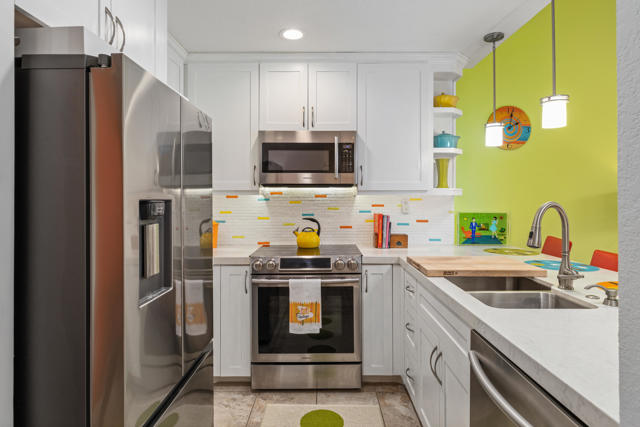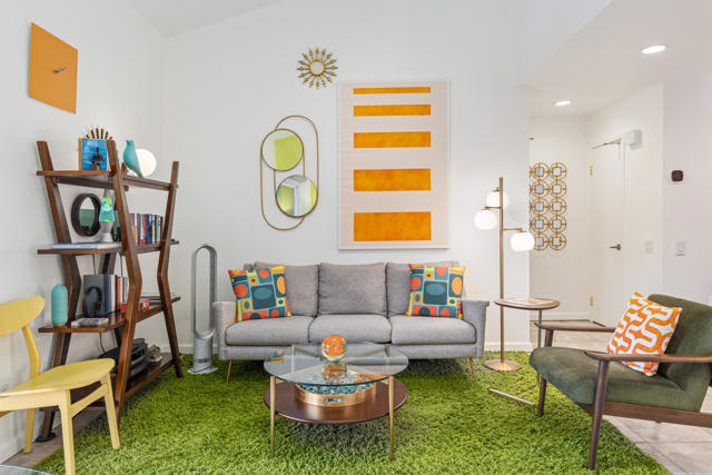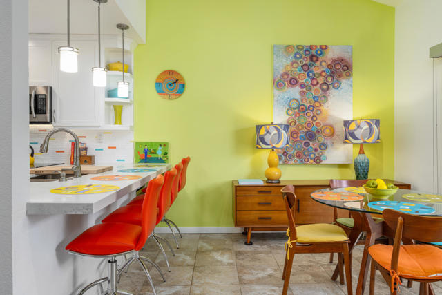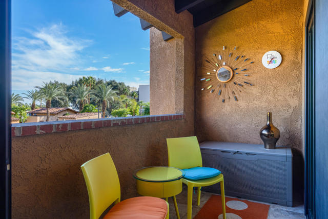 Located on fee land in the highly desirable Ranch El Mirador community, this beautifully updated two-bedroom, two-bath residence offers classic Palm Springs living with a timeless mid-century modern vibe. The front deck captures spectacular views of the San Jacinto Mountains, creating an ideal setting for morning coffee or evening entertaining, while a second outdoor deck provides additional private space for indoor-outdoor living. The updated kitchen features newer appliances, refreshed cabinetry, and a built-in wine fridge, blending style with functionality. Both bathrooms have been tastefully updated, enhancing the home's move-in-ready appeal. Ideally situated near Uptown Palm Springs, the property offers convenient access to popular shops, restaurants, and amenities, making it an excellent full-time residence, second home, or investment opportunity.