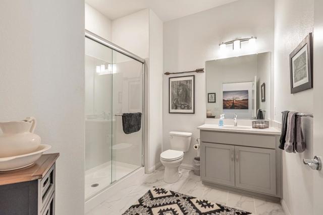 This remarkable single-level condominium offers nearly 1,800 square feet of well-designed living space. The residence includes three generously sized bedrooms and three full bathrooms, featuring two elegant ensuite arrangements. Throughout the home, high ceilings contribute to an open and expansive ambiance, while individual ductless heating and air conditioning units in each room ensure optimal comfort for every resident. The contemporary kitchen is appointed with sophisticated gray shaker cabinetry, complemented by stone gray and white countertops for a polished aesthetic. Seamlessly integrated into the adjoining dining area and living room, the layout is ideal for hosting gatherings. The expansive breakfast bar enhances both the utility and appeal of the space, offering additional seating and serving options. Notable amenities include a rooftop entertainment area for social engagement and relaxation, as well as an elevator for effortless movement within the building. Additional conveniences consist of an in-unit laundry closet, and a two-car garage, complete with ample storage space.
