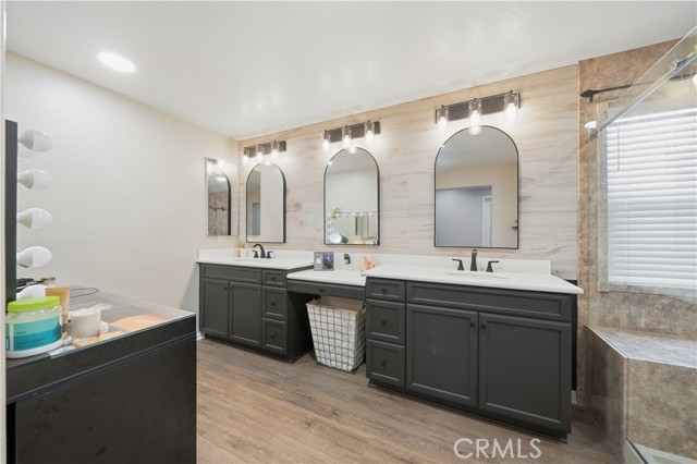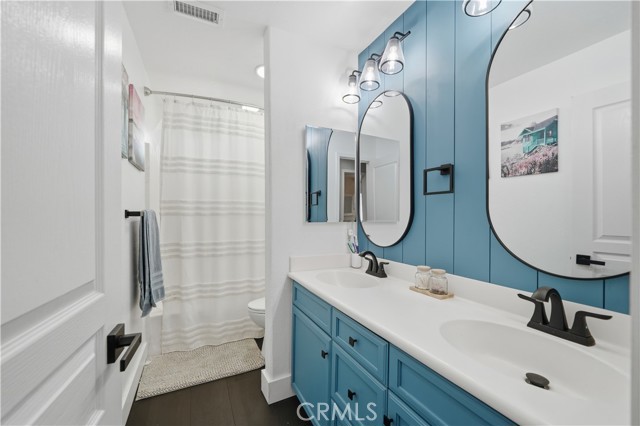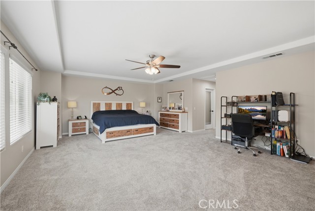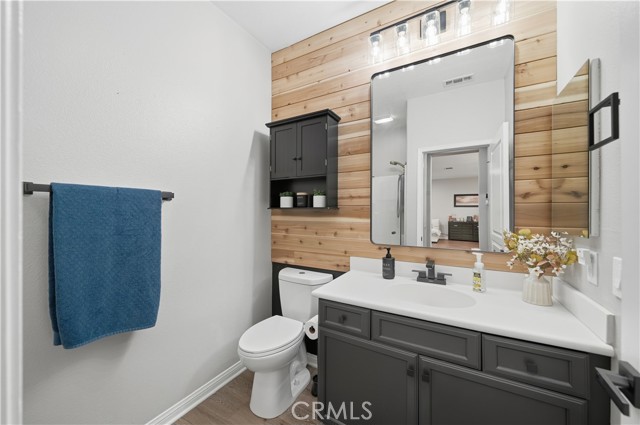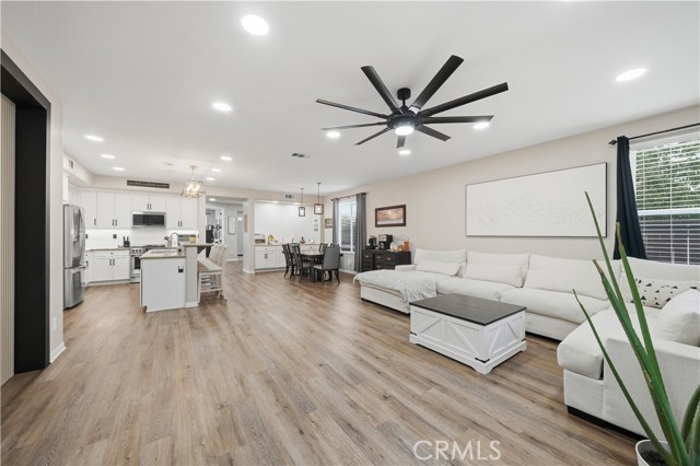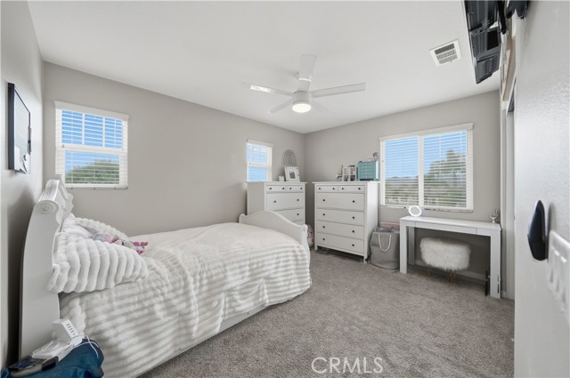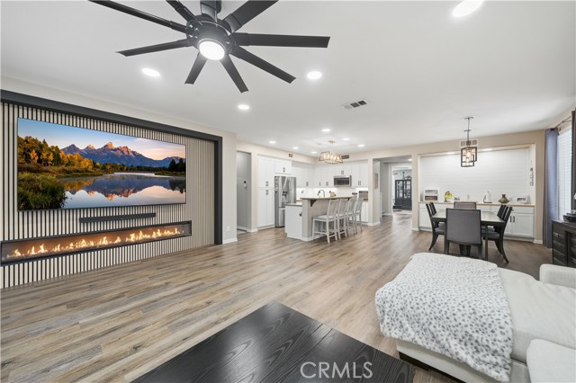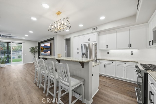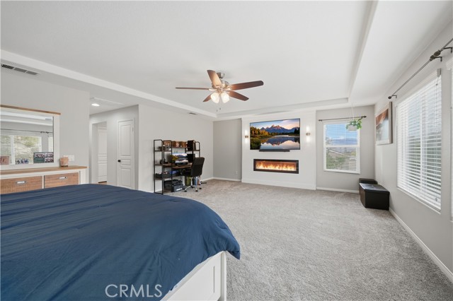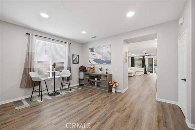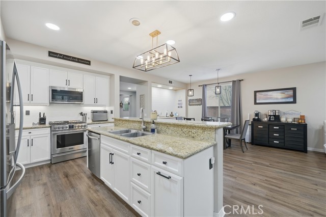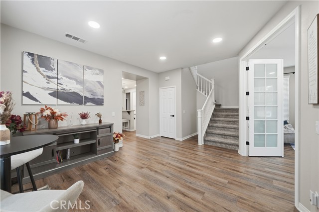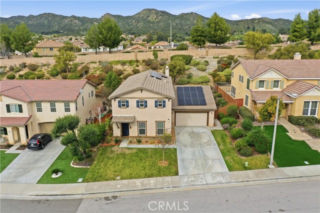Beautifully updated home with PAID SOLAR located in the highly desirable Smith Ranch community of Wildomar— bordering Murrieta with easy access to freeways, shopping, schools, parks, and trendy dining! This turnkey residence offers nearly 3,000 sq ft of well-designed living space featuring 4 bedrooms and 3 full bathrooms, including a highly desirable MAIN LEVEL BEDROOM AND FULL BATH—perfect for guests, multigenerational living. Inside, you’re welcomed by a large mudroom with built-in storage and OPTIONAL 5th BEDROOM, currently being used as an office accented by elegant French doors. The renovated kitchen is a true showstopper, showcasing soft-close cabinetry and drawers, stainless steel appliances, granite countertops, and a designer backsplash. Seamlessly connected living spaces include a formal dining room, dining nook, and a spacious family room highlighted by a custom gas fireplace—ideal for both everyday living and entertaining. Tasteful upgrades throughout the home include custom interior paint, luxury vinyl plank flooring in the main living areas and bathrooms, and plush carpeting in all bedrooms. Upstairs, the primary suite features dual oversized closets, a cozy gas fireplace, and a beautifully updated en-suite bath with dual vanities and a custom walk-in shower. Additional highlights include an upgraded secondary bathroom and an upstairs laundry room complete with washer and dryer. Paid off solar system adds energy efficiency and long-term savings, completing this exceptional home that truly checks all the boxes. Welcome Home!