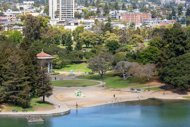 Your own private sanctuary! This sexy corner unit boasts floor-to-ceiling windows and an expansive 30+ foot patio with panoramic Lake Merritt views. Enjoy your morning coffee or al fresco dining as the lake becomes a living canvas from sunrise to sunset. The owners spared no expense in a high-end renovation. Custom closets, double-pane windows, and a spacious integrated work area with built-ins blend beauty and function. Italian stone floors and diamond-finished plaster walls exude craftsmanship, while the chef’s kitchen features Miele appliances, a Caldera glass-top stove, and seamless cabinetry. A dedicated bar with sink and refrigerator makes entertaining effortless. Both bathrooms offer radiant heated floors; the guest bath includes a Japanese soaking tub. Upgraded copper plumbing and other premium touches complete this exceptional home. Lake Royal provides a vibrant community, 24-hour secured parking, a rooftop patio with sweeping views, and easy access to BART, dining, shops, and theaters. Choose extraordinary—you deserve it! Views: Downtown