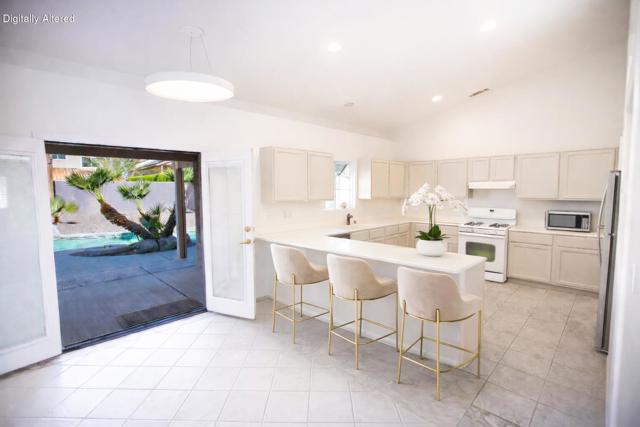 Fabulous Cathedral City Home! Priced to sell! This one HAS IT ALL! Looking for a single level, 3 bedroom/2 bath + Bonus office home with a Pool & Spa, Fire pit, outdoor Gas BBQ, plus delightful Mountain Views of the San Jacinto Mountain Range? This 1894sq.ft. home is the best offering on the market with Tile roof, NEW HVAC system, NEW tankless water heater, NEW Paint, NEW carpet, NEW mailbox, New lighting, BIG freshly painted, 2 car garage and Remodeled baths. Giant family kitchen with breakfast bar, Walk-in pantry and walk in utility closet too. Vaulted, high ceilings, ceilings, recessed lighting, Fireplace in living room , plantation shutters, ceiling fans, dining room, and primary bedroom is huge with 2 walk-in closets, washer, dryer and refrigerator, French doors, and look at the size of the yard. MOVE IN READY. In the good neighborhood of Panorama, just 5 minutes to all the shops, markets, restaurants and schools nearby too. Lovely tree lined street for your furry friend. AS IS condition only. NO HOMEOWNERS ASSOC NO repairs.