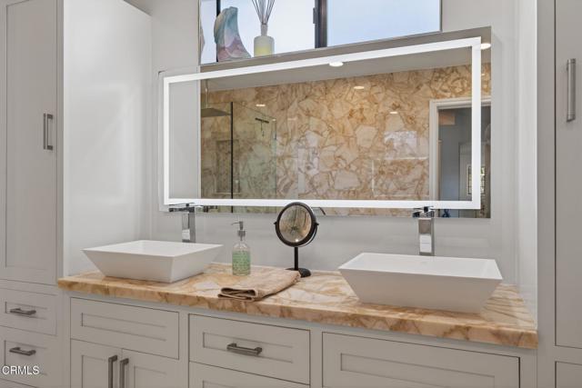 Welcome to Deckside Villas, attached single-family homes with community amenities. This well-designed plan showcases rich wood finishes with marble and stone surfaces. Two private courtyards provide space for entertaining, gardening, or relaxing. A garage with direct access from a courtyard patio and an excellent interior location within the community add to the appeal. Enter through a private gate to a spacious patio. Once inside the home, enjoy the open kitchen with multiple windows allowing for plenty of natural light. Marble counters and beautiful cabinetry frame the space. The laundry area is here for convenience. The kitchen door leads to the second patio with terrific sun exposure. The dining space and living room have soaring ceilings, which offer wonderful options to showcase artwork and lighting. The stacked-stone fireplace and wood mantel are also notable features. The thoughtful design continues to the main level primary suite, with double door entry and a spa-like bathroom. The primary bedroom opens to the courtyard. Upstairs are two bedrooms and an upgraded bathroom with a tub and shower combination. One bedroom has a west-facing window for coastal breezes and gorgeous sunsets. Ample storage is throughout, including a built-in dining area cabinet, a second level linen cabinet, a storage tower in the primary bath, a large closet beneath the stairs with organizers, shelving in the laundry area, and the full-size garage. Deckside Villas residents enjoy HOA amenities including tennis and pickleball courts, a pool and spa, and landscaped grounds. Seabridge Marina access is across the street, and Mandalay Shores beach is a few minutes by car or a scenic 20-minute walk through harborside and coastal neighborhoods. The marina also includes waterfront paths, dining and retail. There are nearby launches for stand-up paddleboarding and kayaking. A variety of yacht clubs and marinas offer docks for electric boats, sailboats, and powerboats, and there are several fishing locations and surf spots close by. The Channel Islands Harbor, known for its Sunday Farmers Market on land, and as the Gateway to the Channel Islands by sea, is 5 miles away. For shopping, nightlife and a music and cultural arts scene, Downtown Ventura is 10 miles way, while The Collection in RiverPark is 7 miles away. There are multiple golf courses within 15 min, and hiking trails from which to enjoy coastal and hillside views. Move in today, entertain tonight!