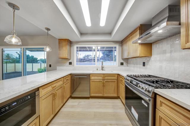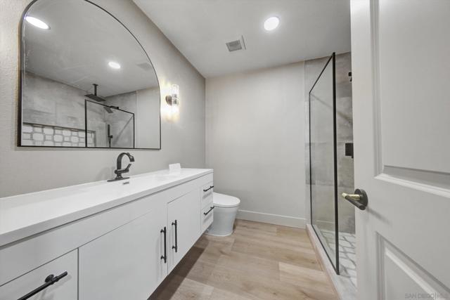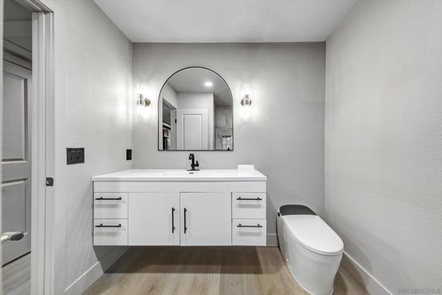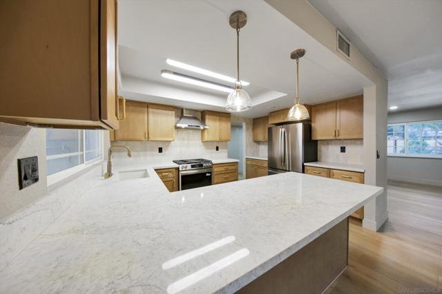 Welcome to this stunning, fully renovated 3-bedroom, 2-bath jewel, perfectly perched along the crest of Mt. Helix in one of La Mesa’s most sought-after neighborhoods. From the moment you arrive, you'll feel the warmth and sophistication of a home designed to impress and built for modern living. Step inside to an open-concept layout that flows seamlessly through every space, combining elegance and comfort in perfect harmony. Every inch of the interior has been meticulously updated — from the pristine new flooring and designer fixtures to custom mirrored accents that elevate the ambiance. The chef’s kitchen is a true showstopper, featuring premium appliances, sleek custom cabinetry, and luxurious quartz countertops — the perfect space for both entertaining and everyday living. Retreat to your private master suite, a serene spa-inspired escape complete with state-of-the-art bidet toilets, stunning stone finishes, and frameless glass panels that exude modern sophistication. Outside, enjoy the expansive driveway with room for multiple vehicles or RV parking, and a custom modern fence that marries contemporary style with privacy — beautifully accented by solar lighting and thoughtful landscaping. The spacious backyard is a blank canvas ready for your personalized outdoor oasis. This home truly has it all — refined design, premium upgrades, and a location that embodies the best of Mt. Helix living. Come see it for yourself — because photos simply can’t capture the full experience. Your forever home awaits!