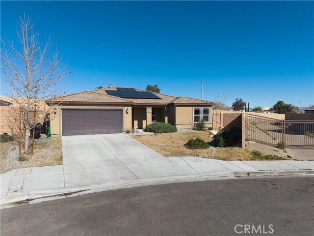 POOL SIZE LOT!!! 1st owners since 2021! Welcome to this beautifully crafted 4-bedroom, 2-bathroom home featuring 1,780 sq ft of spacious living, a 2-car garage, and modern comforts throughout. Step inside to find a flexible den and built in surround sound, a formal dining room, and an abundance of natural light filling every corner. The heart of the home is the upgraded kitchen, elegant quartz countertops, high end SPC flooring, a coffee bar area, and a large walk-in pantry—perfect for everyday living and entertaining. The open family room flows seamlessly from the kitchen, creating a welcoming space for gatherings. Enjoy the privacy of a split floor plan, with a generously sized primary suite that includes a double-sink vanity, walk-in closet, and a bright, relaxing atmosphere. Two additional bedrooms and bathroom offer a comfort and flexibility for family, guests, or a home office. Outside, the backyard features a 40 foot Alumiwood awning patio cover, newer big AC unit, corner lot with spectacular views, a block wall fencing all ready for your personal touch! Energy-efficient features include solar panels (with lease). Located close to freeway access, shopping, dining, and more, this move-in-ready home offers space, style, and convenience—a perfect place to call home!