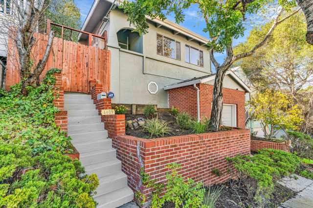 Welcome to 4409 Brookdale Avenue, a charming single-family home in Oakland's desirable Maxwell Park neighborhood. This 1,104 square-foot residence offers three bedrooms and two bathrooms, providing ample space for comfortable living. Located steps from Maxwell Park and Courtland Creek Park, this property promises a serene lifestyle in a prime location. As you approach, a set of stairs leads to a welcoming front gate and covered porch. Inside, the bright great room features a lofted ceiling, large windows, and a classic brick fireplace, creating an inviting atmosphere. The kitchen, centrally located, is equipped with modern amenities, including a new stainless steel refrigerator, dishwasher and Range complemented by generous cabinet and counter space. The first bedroom off the kitchen features hardwood floors and two spacious closets. The rear hallway leads to two additional carpeted bedrooms with large windows and ample closet space. The larger bedroom offers direct access to the expansive backyard, perfect for urban gardening. A convenient laundry area with a washer and dryer is strategically placed between the kitchen and back bedrooms. The home includes two full bathrooms, each with a shower over tub. A single-car garage at street level provides additional storage.