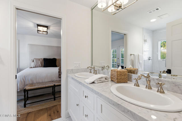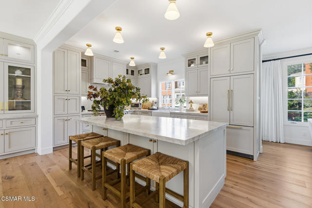 Jaw-dropping panoramic views of Lake Sherwood, the Santa Monica Mountains, and Sherwood Country Club set the stage for this rare end-location townhome--an extraordinary residence remodeled to perfection with a one-of-a-kind renovation that is truly second to none.Set behind the guard gates of Sherwood Country Club, this beautifully reimagined home showcases a modern, wide-open layout designed for effortless living and entertaining.Completely updated with high-end finishes throughout, the residence features a newly designed kitchen with large center island, seamlessly opened to the family room and dining area. Highlights include stunning hardwood floors throughout, all-new cabinetry with expanded storage, new lighting and fixtures, beautifully remodeled marble bathrooms, and a custom built-in wine refrigerator.The flexible floor plan offers 3 bedrooms, an office/library with bar, and 2 additional flex rooms--ideal for a gym, guest suite, office, or game room. The spacious primary suite is a true showpiece with sitting room retreat, private balcony, spa-like bath, and spectacular views.Complete with a three-car garage, ample storage, and a separate storage room, this is Sherwood living at its finest--with access to two clubs offering optional memberships and extraordinary amenities including two Jack Nicklaus-designed golf courses, tennis, pickleball, swimming, and private Lake Sherwood access for boating, paddle boarding, kayaking, fishing, and more.Stunning. Rare. Unforgettable.