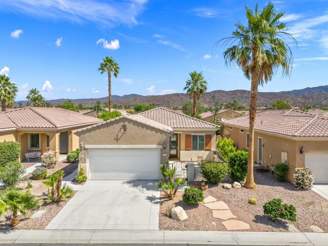 Welcome to this beautifully maintained Serrente model, which is offered FURNISHED. This 2-bedroom plus den home features an inviting enclosed courtyard, perfect for morning coffee or evening relaxation. The kitchen is a standout, featuring granite countertops, stainless steel appliances, and upgraded fixtures, including a newer microwave, faucet, and sink. A newer AC system provides year-round comfort. Enjoy outdoor living at its best with a cozy firepit, and a raised cement platform currently accommodating a spa -- ideal for relaxation and entertaining. Located in the desirable Sun City Shadow Hills community, where residents enjoy low HOA dues and a wealth of amenities such as pools, tennis and bocce ball courts, two golf courses, and so much more. Don't miss the opportunity to live in one of the most sought-after active adult communities in the area!