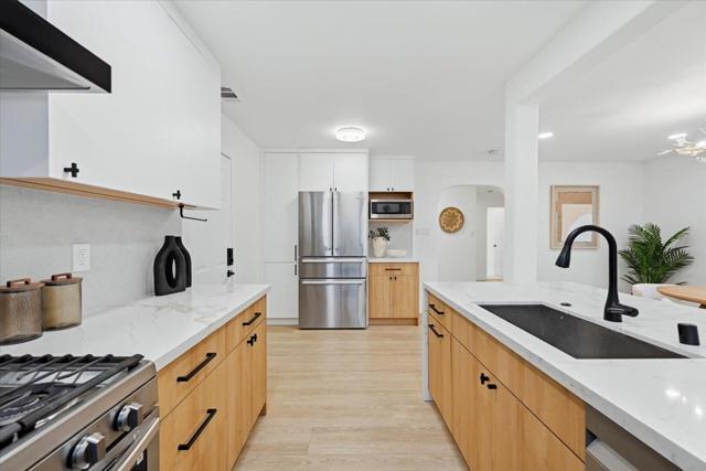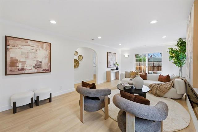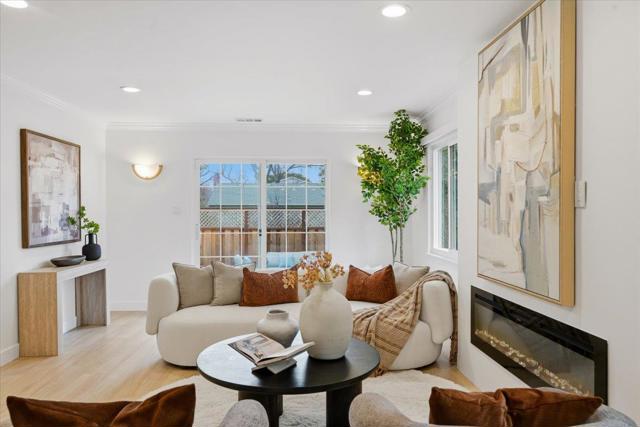 Located on a quiet, tree-lined street in Redwood City. This 4-bedroom, 2-bathroom home offers a refined balance of modern design and long-term living. The spacious living room features large windows and sliding glass doors that bring in abundant natural light, and an electronic fireplace adds a warm atmosphere. The kitchen is designed as a central gathering space, featuring a large island, quartz countertops, custom cabinetry, and premium SS appliances. The primary suite offers a peaceful retreat with an en-suite bathroom with an oversized soaking tub. Three additional bedrooms are bright and versatile for family or a home office. The expansive backyard has excellent privacy and a serene setting for relaxation. Major system upgrades include a 200-amp main electrical panel, a high-efficiency heat pump system, fully replaced ductwork, and insulation offering energy efficiency. The home features Level 5 walls, high-performance flooring, and a smart thermostat. The location is convenient, with Woodside Plaza just a short walk away, Downtown Redwood City, and close to parks, schools, shopping, and dining. Easy access to Highways 101 and 280 providing smooth commutes to Silicon Valley and San Francisco. This is a must-see property, come to visit today and fall in love with this gem!