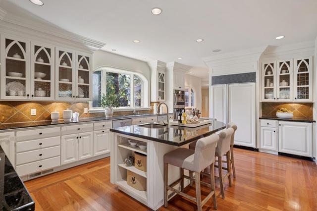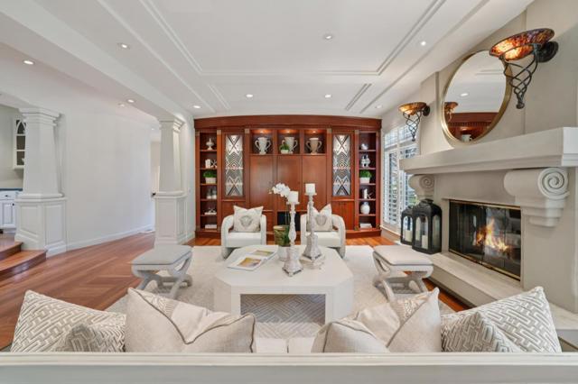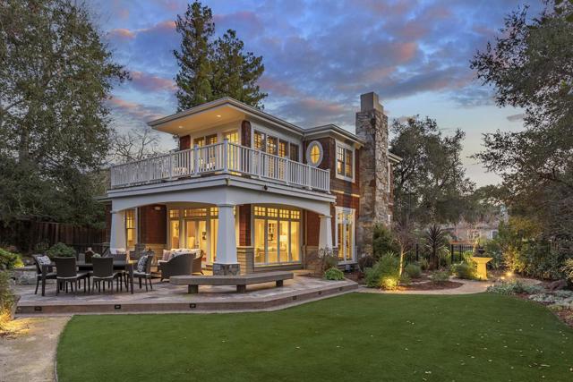 This award-winning residence showcases traditional Cape Cod styling, quality craftsmanship, and impeccable attention to detail around every turn. Custom built and designed to meet the needs of both daily life and large-scale entertaining, this home features 4 bedrooms, 4.5 bathrooms, and 2 offices arranged over three levels. Throughout the home you'll find intricate millwork, gorgeous Australian eucalyptus wood floors, custom light fixtures, and fine stonework. The gourmet kitchen offers an oversized island, Uba Tuba granite, and luxe appliances, and opens directly to the garden-view dining room. The spacious living room has an entire wall of custom cherry wood built-ins, a stately fireplace, and doors to the sun-swept parlor with access to the grounds. Upstairs, the primary suite has a cozy reading nook, a sitting room or nursery, a spa-like bath with a generous walk-in closet, and access to two large balconies. On the lower level you have a spacious family room, a home office, and a bedroom suite ideal for guests. Your serene outdoor retreat stuns with eco-friendly ponds and cascading waterfalls, a fire pit patio, spa, and professionally landscaped gardens. A tranquil escape that feels worlds away, yet just minutes from downtown, top schools, and the heart of Silicon Valley.