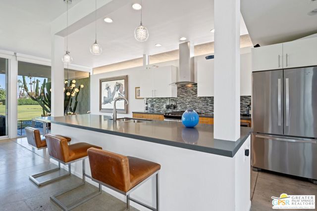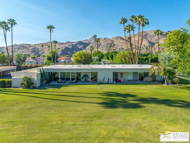 Improved Price! Indulge in the ultimate desert lifestyle at Seven Lakes Golf and Country Club! This stunning 2-bedroom, 2-bath Mid-Century Modern residence has been thoughtfully remodeled to combine timeless design with modern comforts. Every detail has been carefully maintained and upgraded, from newer windows and sliders to the electric panel, roof, HVAC system, water heater, and main water line - offering true peace of mind. Inside, the open-concept floor plan is flooded with natural light and features soaring ceilings, creating an airy, welcoming atmosphere. Entertain with ease as the living, dining, and kitchen areas flow seamlessly together, while the living room frames panoramic views of three pristine fairways. Step outside to a spacious private courtyard, perfect for morning coffee, alfresco dining, or simply soaking in the serene desert surroundings. Originally developed under a Tribal Lease, Seven Lakes has since transitioned to highly desirable Fee Simple Ownership, offering lasting value and peace of mind for homeowners. Seven Lakes offers 24 hour guard-gate, a magnificent manicured 18 hole 2717 yard 58 par executive course, a club house with restaurant and bar. 15 community swimming pools and 15 spas as well as full sized tennis courts and pickleball courts. Built between 1964 and 1972, Seven Lakes Golf & Country Club is a private, mid-century modern gated community of 341 homes. Situated on 120 acres, Seven Lakes is in the southern section of Palm Springs in zip code 92264, close to downtown and shopping. The community provides breathtaking views over a Ted Robinson designed 18 hole executive golf course enhanced by mid-century modern architecture designed by Ric Harrison and William Cody. The Richard Harrison designed residences are situated throughout the golf course with stunning mountain views reflecting the natural beauty of the desert. Seven Lakes Golf & Country Club located just a few miles from downtown Palm Springs, surrounded by the Santa Rosa and San Jacinto Mountains. Living at Seven Lakes means access to unparalleled amenities: an iconic William Cody-designed clubhouse, a championship golf course crafted by Ted Robinson, 15 sparkling pools and spas, and round-the-clock guarded security. Here, every day feels like a luxury retreat. Don't miss the opportunity to own a home that combines style, comfort, and world-class resort living in one spectacular package.