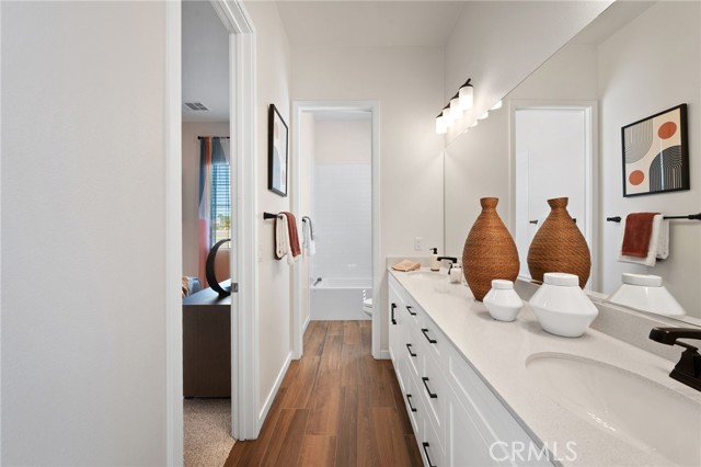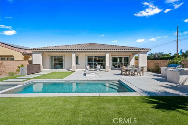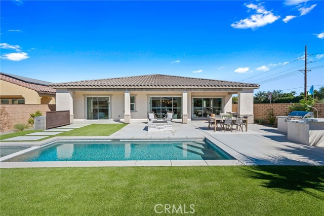 Experience luxury living in this stunning single-story estate home, offering 2,847 sqft of thoughtfully designed space with over $30,000 in upgrades. This home features 4 spacious bedrooms, 3.5 bathrooms, a junior office, and a versatile game room—perfect for work, play, or entertaining. Enjoy the covered patio and your very own pool and spa, included at no extra cost. Soaring 10-foot ceilings and CrestWood Communities’ signature finishes add elegance throughout. The chef’s kitchen showcases Quartz countertops with a 6-inch backsplash, while energy-efficient features like a tankless water heater and LowE windows provide long-term value. Photos are of model home