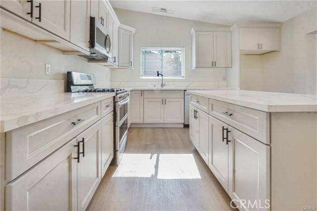 Step into this stunning, all-new, remodeled home, featuring 3 spacious bedrooms and 2 modern bathrooms. The bright, open-concept living room welcomes you with soaring cathedral ceilings, recessed lighting, and a cozy fireplace centerpiece. Luxury vinyl plank flooring flows throughout the home, adding warmth and durability. ***Up to $30,000 Down Payment Assistance available and a below 6% interest rate*** ** Chef’s Kitchen Highlights: Vaulted ceilings with recessed night-lighting Soft-close cabinets and drawers Oversized quartz island perfect for entertaining Upgraded countertops and finishes ** Bathrooms: Farmhouse-style vanities Sleek fixtures and modern tilework ** Exterior Features: Fresh new lawn with Wi-Fi-controlled irrigation Motion-sensor lighting on the garage and patio Upgraded modern house address for curb appeal Dual-pane vinyl windows for energy efficiency Bonus family room, dining area, and thoughtful upgrades throughout make this home move-in ready and ideal for modern living. **Don’t miss this opportunity—schedule your private tour today!