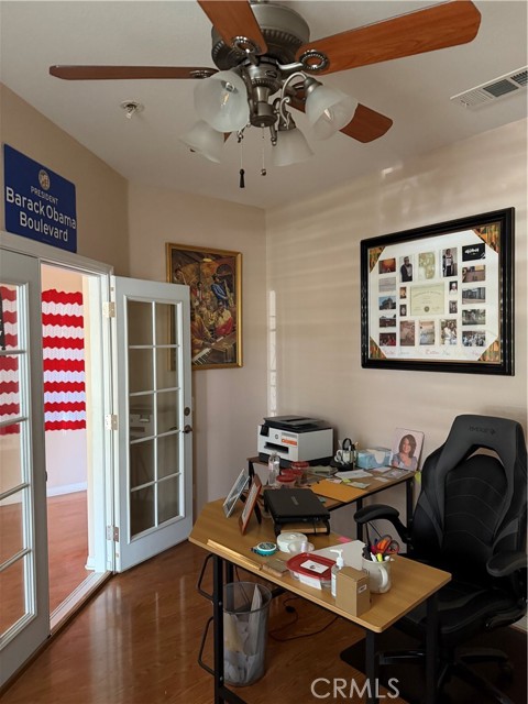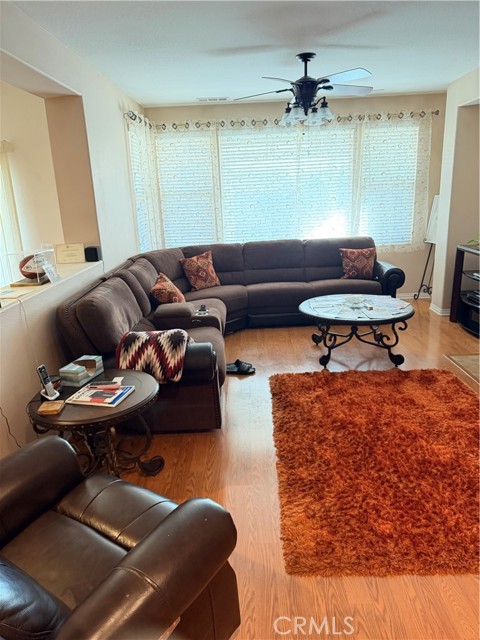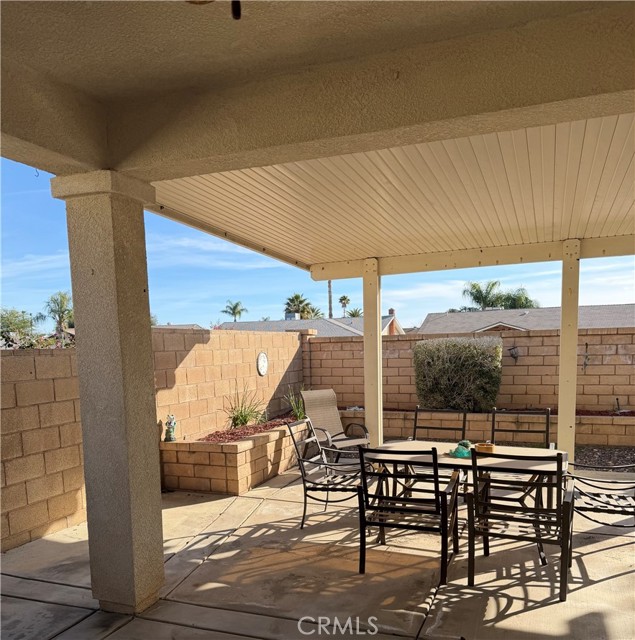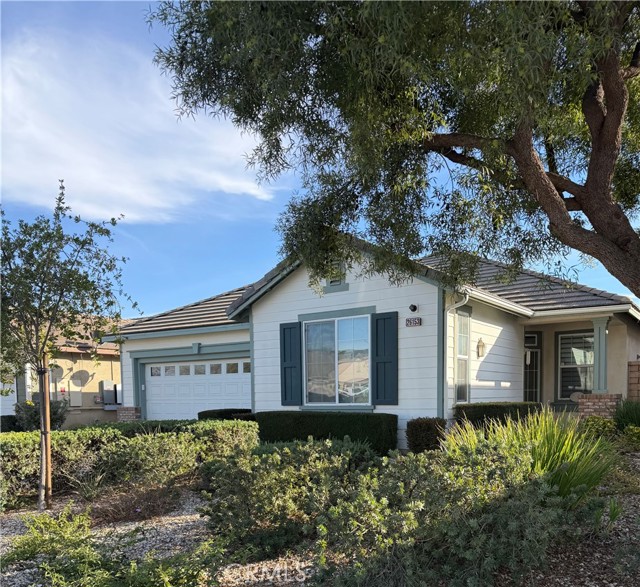 Welcome to the Retreat At Holiday, sought-after "Over 55" gated resort community. The bright living room features a cozy fireplace and flows into the gourmet kitchen, with a breakfast bar island. Ceiling fans, located throughout the home. Two master bedrooms with their own bathrooms located on opposite sides of the home for comfort. Master suite has a walk-in closet. Home also has an Extra Bonus room with two large double glass paned windows for sound proofing. Large laundry room with a sink, desk, and ample storage. Walk in the home through the 2-car garage. Low maintenance landscaping front and back yard. The back yard has block walls on all sides for privacy. Has a built in patio and awning. The back yard is fully landscaped and ready entertain and enjoy. Resort style amenities, community offers community pool, spa, fitness room, outdoor BBQ, and club house. The community is close to the freeway, local markets and Menifee growing shopping district with popular stores and Restaurants.