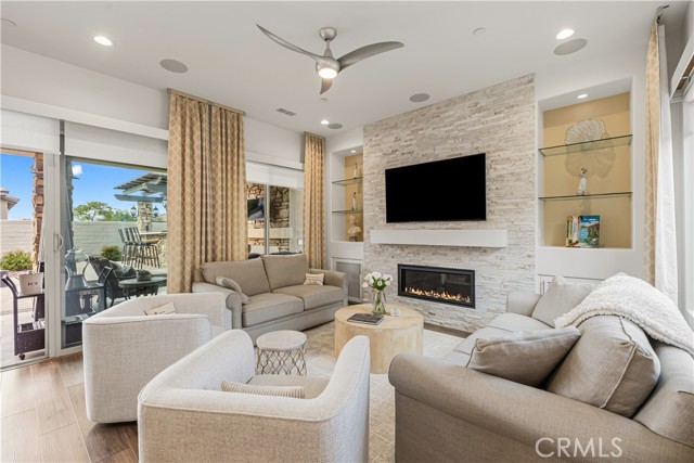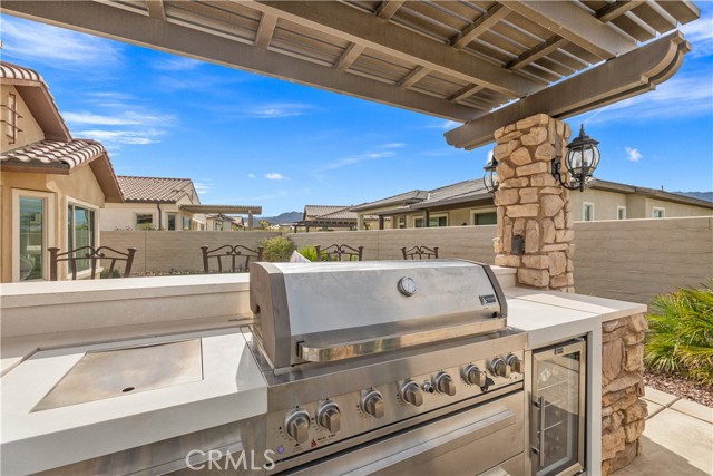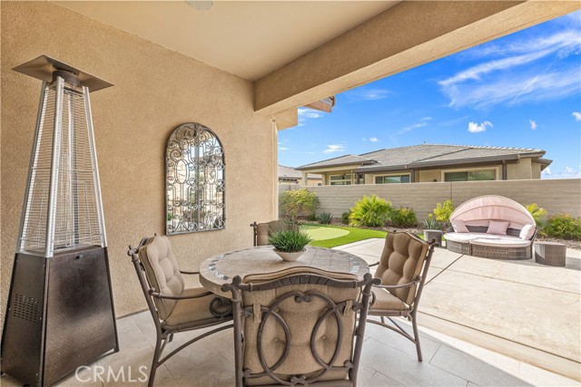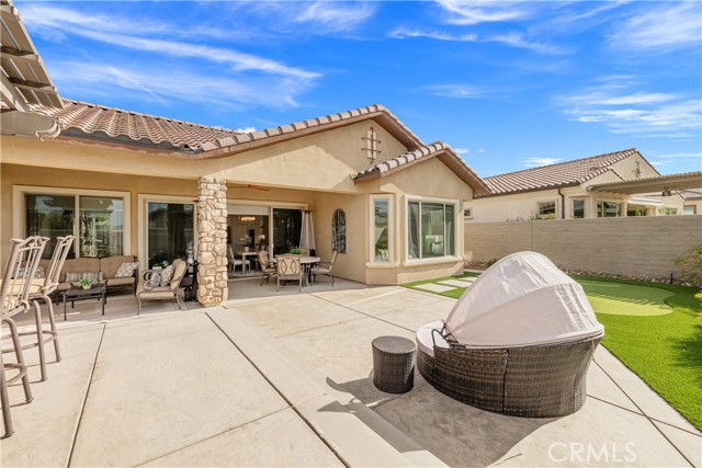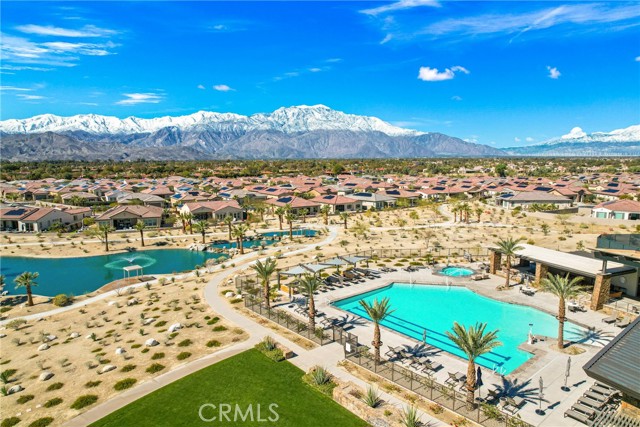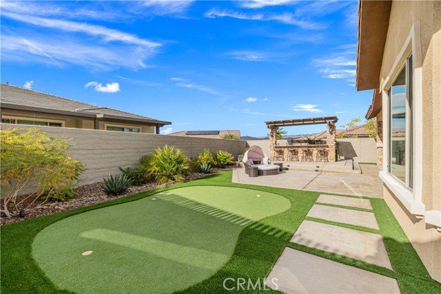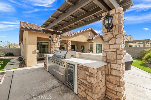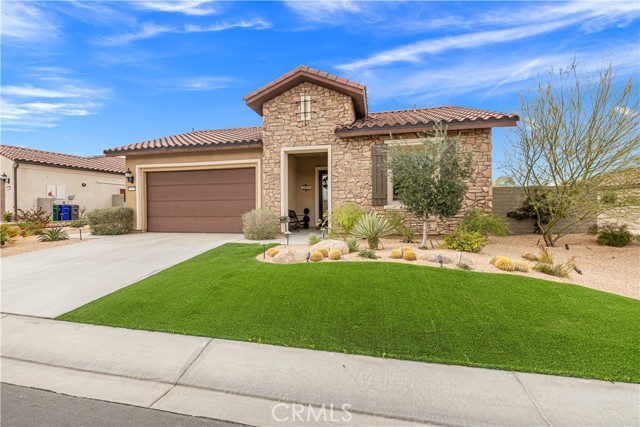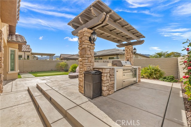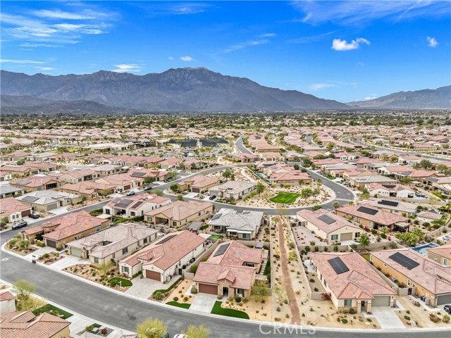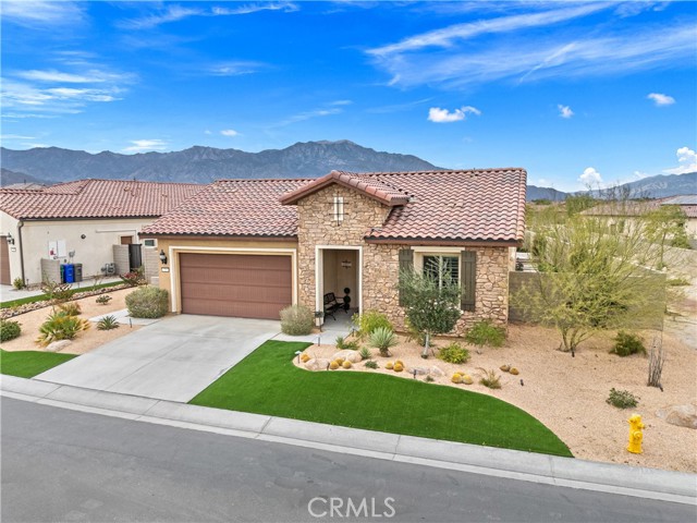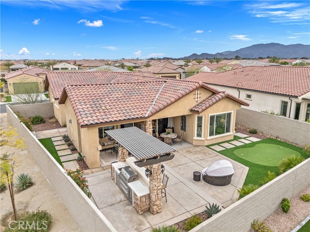 Welcome to this stunning 2-bedroom, 2-bath residence with an elegantly designed den, located in the highly sought-after Del Webb Rancho Mirage 55+ community. This property is located on one of the largest lots within the community just under 8,000 sqft. Meticulously upgraded and beautifully curated, this exceptional home blends sophisticated design with effortless indoor-outdoor living, all with serene mountain views. The open-concept family room is a true showpiece, featuring a custom white stone fireplace, recessed- lighted display niches, and an integrated surround sound system that creates an immersive entertainment experience. The kitchen and laundry room are enhanced by designer tile backsplashes, while thoughtfully crafted custom cabinetry includes built-in drawers in the front bedroom and custom shelving, cabinetry, and a built-in desk in the den, ideal for a refined home office or creative retreat. The expansive primary suite offers a private sanctuary, highlighted by a beautifully appointed spa-inspired bathroom and large walk-in closet with fully customized built-in shelving and cabinetry designed for both elegance and organization. Blackout shades provide comfort for those hot days and privacy, completing the serene retreat. Additional luxury appointments include remote-controlled shades on the living room patio doors, custom shades in the family room, and classic plantation shutters in the den, front bedroom, and primary bathroom. As well as, luxury vinyl plank flooring throughout. The laundry room is equally refined with custom risers and drawers, elevating the washer and dryer for added ease and convenience. Step outside to a resort-style outdoor oasis crafted for both relaxation and entertaining. The enclosed patio with porcelain tile flooring flows seamlessly to a custom outdoor kitchen with stone finishes, built-in grill, countertop, and pergola. A custom concrete patio with illuminated steps, a 3-hole putting green, and artificial turf in both the front and back yards create a low-maintenance yet luxurious environment. An outdoor stone entertainment wall, designed to match the grill area, completes this exceptional space. This remarkable residence delivers refined luxury, thoughtful design, and resort-style living within one of Rancho Mirage’s most desirable communities.