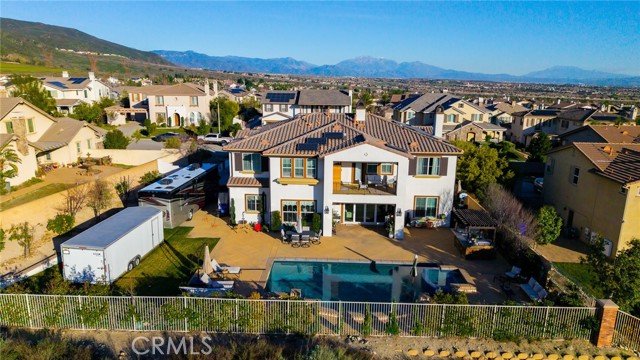 Welcome to 5116 Branding Iron, an exceptional custom residence offering luxury, scale, and thoughtful design in one of Rancho Cucamonga’s most desirable neighborhoods. This expansive home offers 6 bedrooms and 6.5 bathrooms, including a private guest suite with its own entrance. The home features bedrooms with en-suite bathrooms, providing comfort and added privacy. Spanning nearly 5,800 square feet on a .36-acre lot, the property includes a 3-car garage and RV parking. The home impresses with 10-foot ceilings on the main level, highlighted by a dramatic 20-foot open living area that creates an incredible sense of space and natural light. The second story features 9-foot ceilings and includes a second staircase for added convenience and flow. High-end finishes are featured throughout, including a fully marble kitchen and marble countertops in the laundry room and coffee nook, complemented by quartz countertops throughout the rest of the home. All kitchen appliances included in sale: 48" six-burner gas cooktop with griddle, built-in Sub-Zero® refrigerator, double ovens, microwave, and warming drawer. The property also includes a whole-house surround sound system, three fireplaces, and two balconies, enhancing both everyday living and entertaining. Oversized closet in primary bedroom and additional laundry set up inside the closet. Step outside to a resort-style backyard showcasing a saltwater pool with and integrated jacuzzi spa, ideal for enjoying Southern California living year-round. Custom Built-In Stone BBQ Island Featuring a Full Suite of High-End Lion® Accessories A permanent, architecturally finished stone island anchored by a top-tier Lion built-in grill, power burner, side burner, outdoor refrigeration, and integrated storage—designed for serious outdoor cooking and upscale entertaining Additional upgrades include a maintenance-free LifeSource whole-house water system, providing clean, drinkable water from every tap. Energy efficiency and modern convenience are elevated with a solar system and Tesla fast chargers already in place. This remarkable estate blends luxury finishes, smart upgrades, and exceptional indoor-outdoor living—offering a rare opportunity to own a truly turnkey home in Rancho Cucamonga.