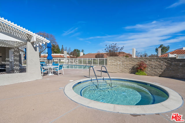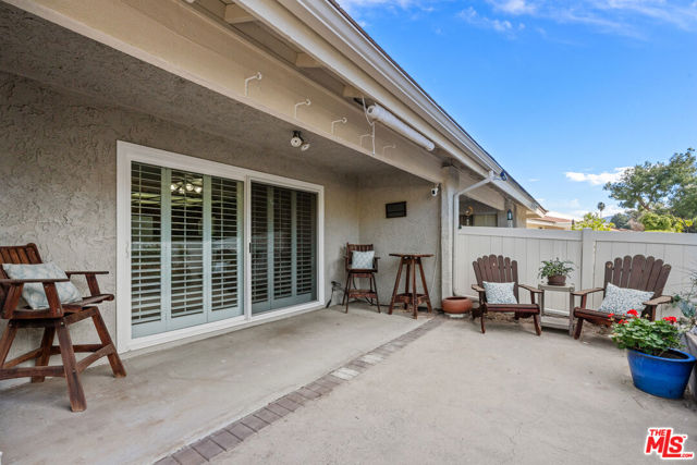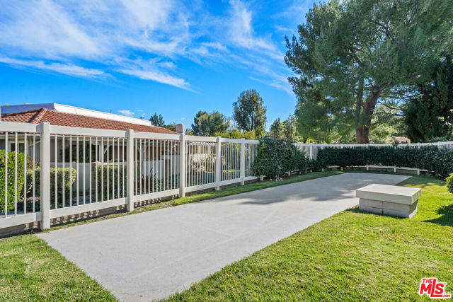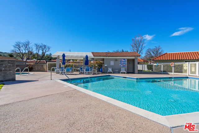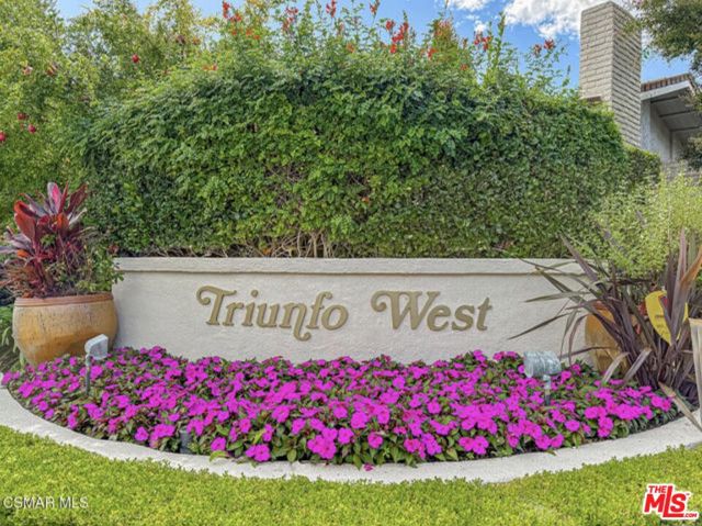 Single story Triunfo West condo with best location. This much sought after community offers 22 acres of beautifully landscaped grounds including walkways, 2 pools with spa and bathrooms. With a generous courtyard entry leading to gardens that wrap around and lead to a rear patio, facing a greenbelt. This 2 bedroom floor plan offers privacy and loads of natural lights. The primary suite offers views of the rear patio, 2nd bedroom has views of entry courtyard. Living and Dining rooms are spacious and share a center fireplace. 2 car private garage has direct entry to the courtyard. Upgraded windows and sliding doors. This is a well managed community with friendly neighbors. Close to the lake, parks, shopping & dining.
