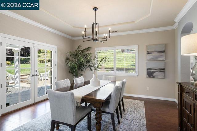 This home truly has it all—luxury, location, and lifestyle. Don’t miss your chance to own a slice of paradise in Northgate! Stunning estate in sought after Northgate! Features include vaulted ceilings, fresh paint, new carpet, and updated light fixtures throughout. The elegant dining room offers crown molding, a tray ceiling, French doors, and a new chandelier. The spacious kitchen boasts brand-new quartz counters, stainless appliances, ample cabinetry, and large windows with views of the pool and backyard. A private downstairs office with built-ins can serve as a 5th bedroom. Upstairs you'll find 4 bedrooms, including a luxurious primary suite with a walk-in closet and updated bath with glass-enclosed shower. Enjoy a 3-car garage with built-in cabinets and Onrax storage. The backyard is a resort-style retreat with a pool, spa, sport court, pavilion with full outdoor kitchen and bathroom, fire pits, water features, and Mt. Diablo views. Located within the highly sought-after Northgate school district—Walnut Acres Elementary, Foothill Middle, and Northgate High—this home also offers proximity to Shadowbrook Winery, Mt. Diablo State Park, and more.