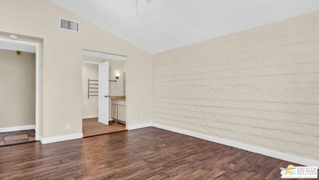 CALLING ALL INVESTORS ... Looking for a smart investment in the Coachella Valley? This updated 2-bedroom, 2-bath condo with a 2-car garage in Cathedral Canyon Country Club comes with a long-term tenant already in place. Located in South Cathedral City, just off Cathedral Canyon Drive, the home offers a convenient and desirable setting, steps away from the pools and lakes of the HOA. The flexible living area features sliding glass doors that open to a private patio, perfect for indoor-outdoor living. Two versatile nooks on either side of the kitchen provide ideal space for a home office, dining area, or extra storage. Additional highlights include in-unit laundry with direct access to garage, smart floorplan that separates the bedrooms from the living area, and ensuite bathrooms in both bedrooms. Fantastic opportunity for both new investors or to add to an existing portfolio. NOTE: unless noted, photos are from 2024 before tenant moved in. New photos will note "Image from January 2026."
