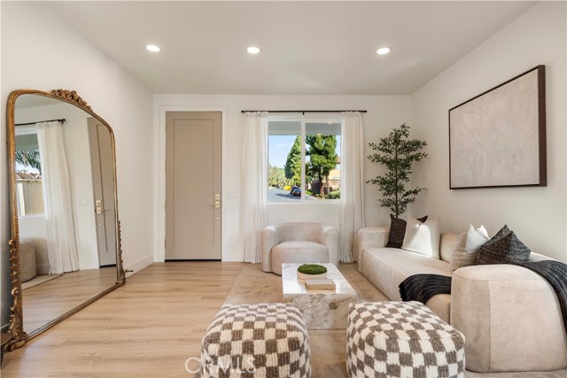 Fully remodeled 4-bedroom, 4-bathroom West Irvine home offering 2,289 sq ft with no HOA, no Mello-Roos, and a low tax rate. This residence has undergone a complete interior and exterior renovation, including new cabinetry throughout, upgraded PEX plumbing, updated electrical, full recessed lighting, LED lighting, smart switches, and fresh interior and exterior paint. The redesigned kitchen features Taj Mahal porcelain countertops, new high-end appliances, built-in pantry cabinetry, and under-cabinet lighting. All bathrooms and the laundry room have been fully remodeled with new fixtures, toilets, mirrors, and showers. The spacious primary suite features a newly built, oversized walk-in closet and a spa-inspired bath. Fully wrapped Taj Mahal porcelain fireplace. Fully landscaped front and backyard with new fencing, privacy ficus trees, solar garden lighting, and sunset views. Washer and dryer included. RH staging pieces available for purchase. Truly turnkey West Irvine home.