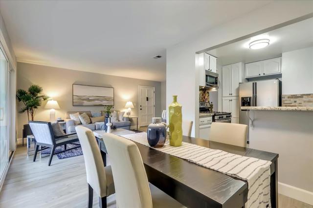 Tucked within the desirable Kentfield Condominiums, this beautifully remodeled top-floor residence offers a rare opportunity to enjoy elevated living in the highly sought-after Cupertino school district. Filled with natural light, the home showcases a spacious, well-designed layout with a generous living room, large primary suite, and two fully renovated bathrooms with modern finishes. The thoughtfully updated kitchen features tasteful design and functionality, while new laminate flooring, fresh interior paint, updated lighting, double-pane windows, and an in-unit laundry room add comfort and convenience throughout. Step outside to a private balconyperfect for relaxing or enjoying the sunshine from this premium top-level location. Residents enjoy access to community amenities including a swimming pool, clubhouse, and BBQ area. Ideally situated near Apple Park, major commute routes (85, 280, 880, Lawrence & San Tomas Expressways), Santana Row, shopping, dining, SJSU, and the airport. An exceptional blend of style, location, and top-tier schools, this home presents an outstanding opportunity for both homeowners and investors seeking entry into the Cupertino school district.