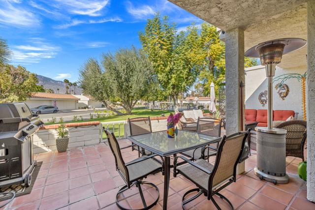 Fully remodeled. Completely furnished. Effortlessly turn-key.From dishes and glassware to furniture and decor--everything is included. Just bring your toothbrush and start living. Welcome to Cathedral Canyon Country Club, a coveted gated enclave offering true resort-style living with an 18-hole golf course, tennis courts, multiple sparkling pools, clubhouse amenities, and beautifully manicured grounds. This light-filled corner residence is wrapped in windows, creating a bright, airy atmosphere throughout. The thoughtfully designed 2-bedroom, 2-bath layout also features a versatile bonus space--perfect as a home office, den, or convertible third sleeping area. Soaring 13-foot vaulted ceilings elevate the open-concept living space, delivering volume, flow, and architectural drama. The home has been extensively upgraded with new flooring, fresh interior paint, upgraded stainless steel appliances, and two fully remodeled bathrooms, including a stunning primary en-suite. The kitchen opens seamlessly to the dining and living areas, ideal for relaxed everyday living or entertaining with ease. Step outside to the oversized west-facing patio and soak in panoramic mountain views, glowing desert sunsets, and direct access to the pool--just steps away. This is indoor-outdoor living at its best. Additional highlights include an insulated and updated two-car garage with built-in storage, an energy-efficient HVAC system less than five years old, premium window treatments, and newer appliances throughout. Meticulously maintained and move-in ready, pride of ownership is evident in every detail. Residents enjoy lush, reseeded fairways, serene walking paths, and unbeatable proximity to downtown Palm Springs, El Paseo, the airport, shopping, dining, and entertainment. Corner unit. Steps to the pool. Incredible sunsets. A perfect full-time residence, vacation retreat, or investment opportunity--this is resort living, done right.