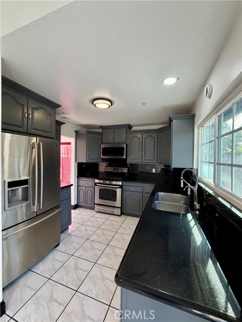 This beautiful home is ideal for a growing or first-time family and is nestled in a desirable, quiet neighborhood on a cul-de-sac, perfect for children's safety. The well-designed floor plan offers direct access from the garage into the home for added convenience. The property features fresh interior and exterior paint, along with new recessed lighting throughout the living room, dining area, family room, and bedrooms. The kitchen has been tastefully updated with newly painted cabinets, new sink faucet, and a new microwave. The refrigerator and stove are included. The family room and primary bedroom showcase high ceilings, creating an open and airy feel. Both bathrooms have been upgraded with new vanities. French doors in the living room open to a spacious backyard, ideal for entertaining, family gatherings, and outdoor enjoyment. The property also offers side access to the backyard for small vehicles. The roof was replaced just two years ago. The landscaped yard includes two lemon trees in the front yard, and a tangerine tree and lime tree in the back yard, adding charm and fresh fruit to this inviting home.