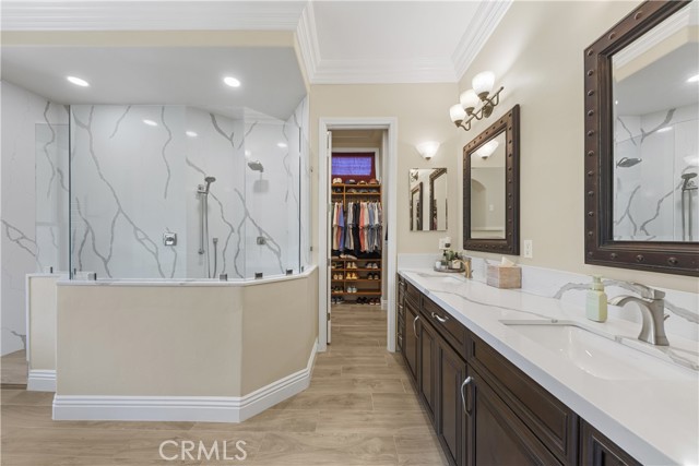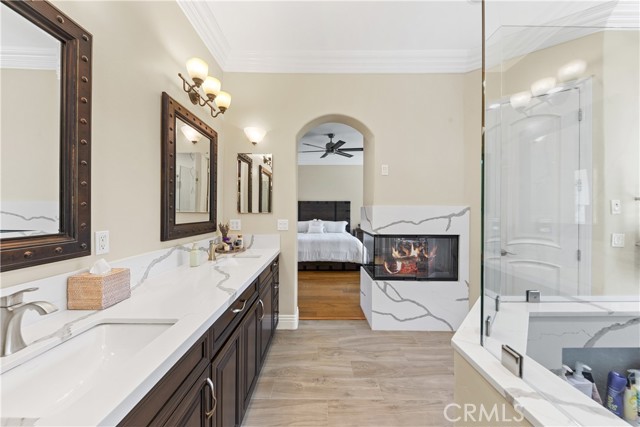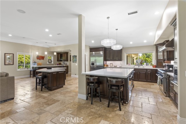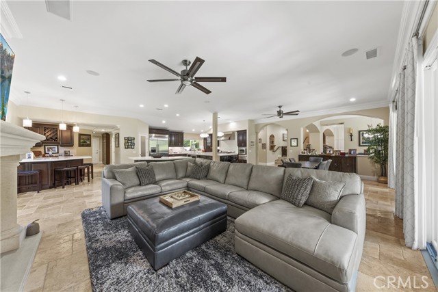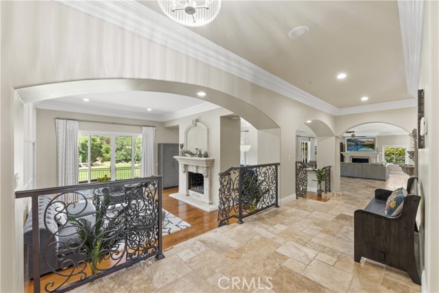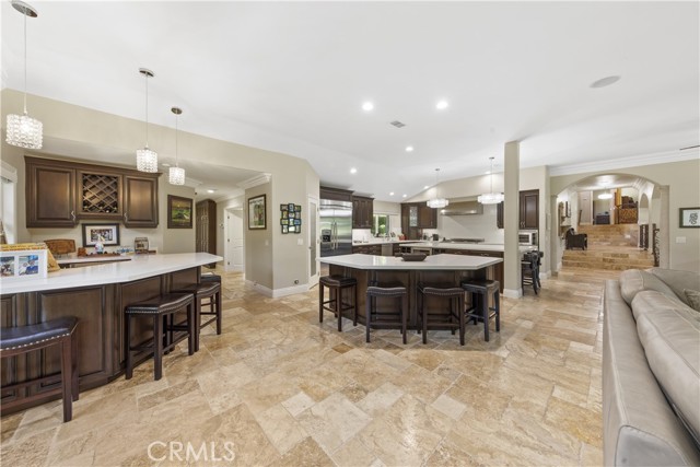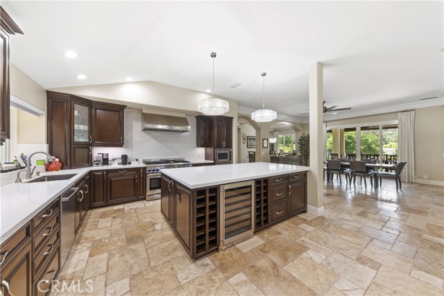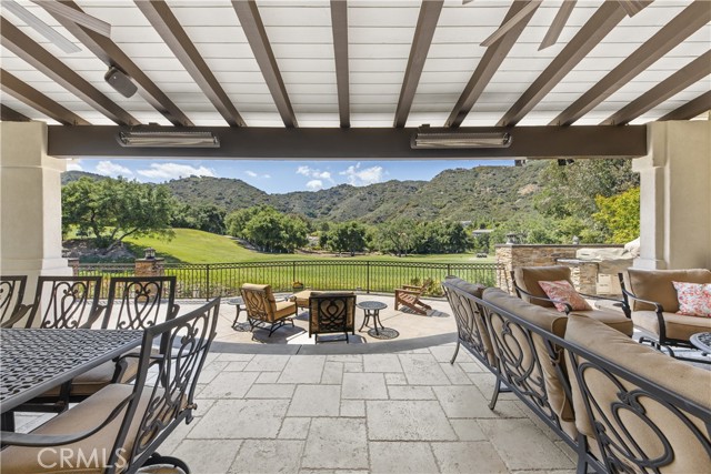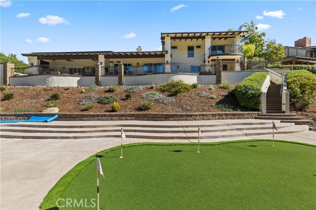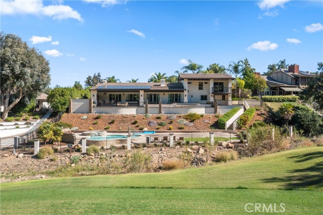 Welcome to an exceptional opportunity within the highly exclusive Bear Creek community, where sophistication, privacy, and resort-style living come together seamlessly. This luxurious pool home offers 4,140 sq ft of elegantly appointed space, including 4 spacious bedrooms, 5 bathrooms, and an entertainer's layout designed for both comfort and refinement. With paid solar already in place, the home combines luxury living with energy efficiency, a rare and valuable bonus. The heart of the home is an exquisite chef's kitchen, thoughtfully equipped with high-end stainless steel appliances, crystal lighting, three wine refrigerators, two warming drawers, and a generous walk-in pantry-all opening to expansive living spaces that are ideal for hosting. From the family room's fireplace and serving bar to the formal living and dining rooms finished with sandstone floors and crown moulding, every detail exudes understated elegance. Step outdoors to your private sanctuary overlooking the 5th green of Bear Creek's renowned Jack Nicklaus-designed golf course. Enjoy breathtaking views and year-round entertaining with a sparkling pool and spa, outdoor fireplace, putting green, built-in BBQ with pizza oven, ceiling fans, and heaters-all designed to elevate your lifestyle. Additional highlights include a hidden bonus room/office, a dedicated workout space, a laundry room, and full whole-home sound wiring. As a resident of Bear Creek, you'll enjoy access to premier amenities including a private golf course, fitness center, tennis and pickleball courts, bocce ball, a community pool and spa, clubhouse, and 24-hour guard-gated security. Located near top-rated schools with convenient freeway access, this remarkable estate offers the perfect blend of luxury, comfort, and exclusivity.