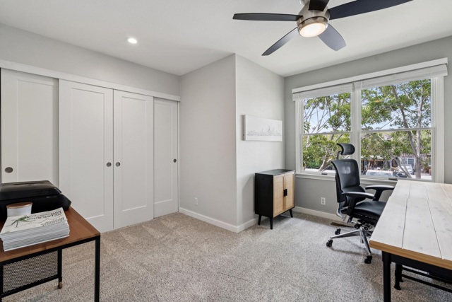 Discover contemporary living in this beautifully updated two-story condo in the gated community of Centre Court on Harbor Bay Isle. The first floor features a bright, open-concept design with seamless flow between the living, dining and kitchen areas. A functional gas fireplace anchors the spacious living room and opens to a private patio, while recessed lighting and dark laminate floors create a warm yet contemporary feel. The updated kitchen includes abundant white shaker cabinetry, sleek black countertops, a peninsula and stainless steel appliances, including a gas range, dishwasher, and refrigerator. A dining area with large windows overlooks the front of the property. For added convenience, this level also offers a half bathroom, a laundry closet and multiple closets offering ample storage or space for a pantry. Upstairs, the primary bedroom features a custom-organized closet with mirrored doors and an en-suite bath, complete with a quartz vanity and a glass-enclosed shower. Two additional bedrooms and a hall bath with a shower-over-tub complete the second floor. Conveniently close to the scenic Harbor Bay Trail, SF Ferry, shopping, Chuck Corica Golf Course and local parks. Open House Sat 1/31 12-2pm.