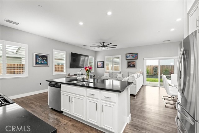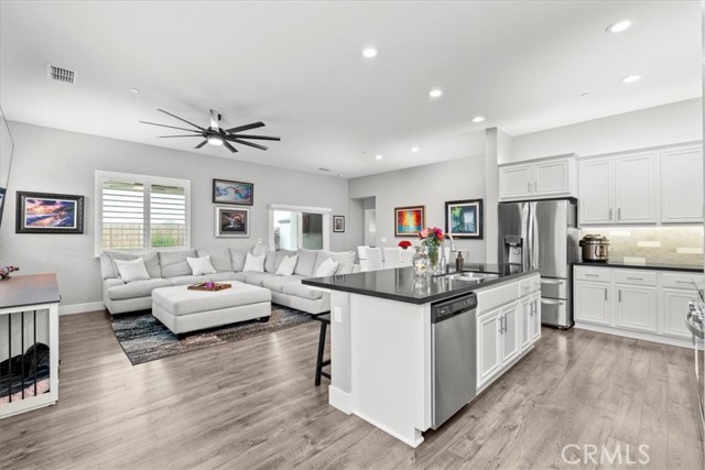 Welcome home to this exquisitely upgraded three-bedroom, two bath residence, where modern elegance meets everyday comfort. From the moment you arrive, you’ll be captivated by the home’s pristine condition and inviting ambiance. Inside, a bright and open concept floor plan unfolds, highlighted by plantation shutters, recessed lighting, and a seamless flow between the living room, dining area, and kitchen deal for effortless entertaining, especially as spring approaches. The kitchen is a true showpiece, featuring upgraded countertops, a designer backsplash, and enhanced cabinetry that blend style with functionality in a timeless way. The spacious primary suite offers a peaceful retreat, complete with a well appointed en-suite bath. Two additional bedrooms provide versatility for guests, a home office, or growing family needs. Step outside to a thoughtfully designed entertainer’s backyard, complete with a covered patio, relaxing hot tub, the backyard offers gas hook ups ready for BBQ's. Fully landscaped and meticulously maintained, the yard also includes a fully fenced dog run, making it as practical as it is inviting. This home is the perfect blend of style, comfort, and livability truly move in ready and not to be missed.