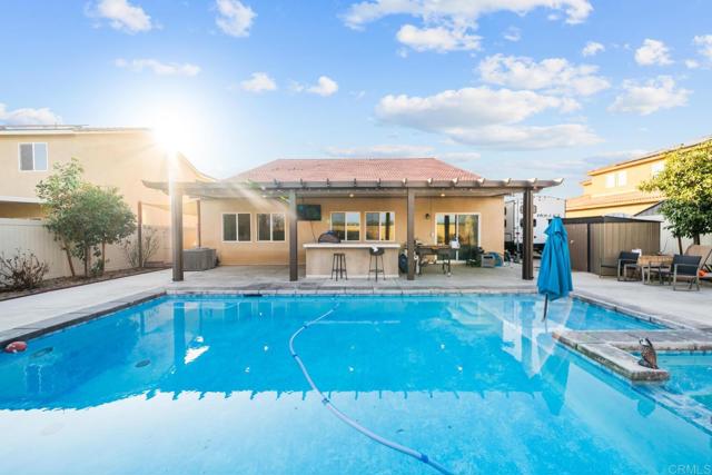 This beautiful 5-bedroom, 3-bath home offers 2,657 sq ft of space designed for comfortable family living. Built in 2022, the home features a modern open layout with plenty of room for everyone to spread out. Spacious bedrooms and multiple living areas make it ideal for growing families, multigenerational living, or hosting loved ones. Step outside to a private backyard with a gorgeous pool—perfect for family fun, weekend barbecues, and making lasting memories. RV access adds extra convenience, while paid-off solar helps keep energy costs low. An EV charger is already installed, and the converted garage provides a versatile man cave, playroom, or family hangout space. This move-in-ready home combines comfort, efficiency, and flexibility in a setting made for everyday living and special moments alike.