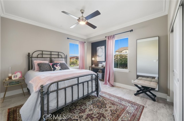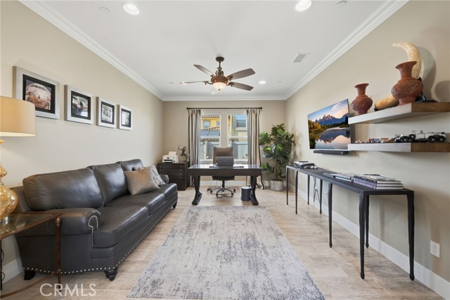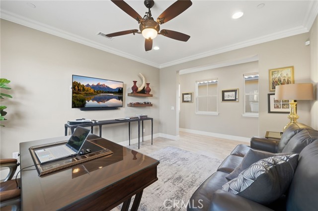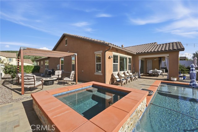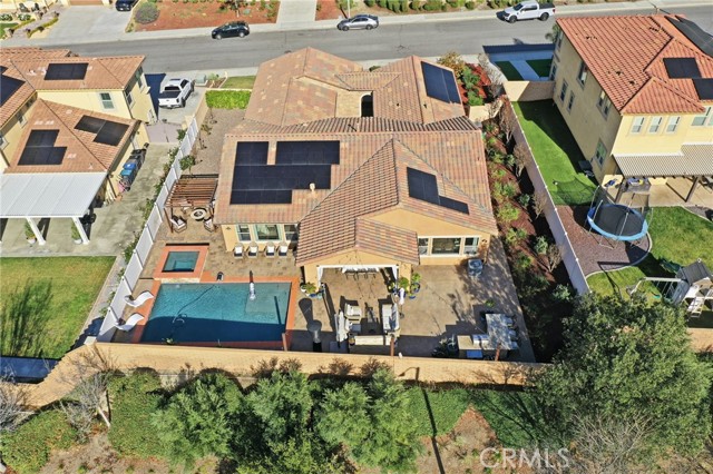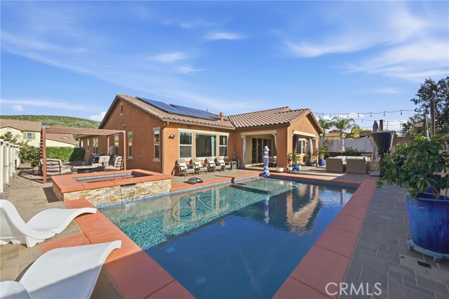 IMMACULATE SINGLE STORY, POOL HOME W/ FULLY PAID SOLAR!! Welcome to this highly upgraded single-story 3-bedroom + den/office home, thoughtfully designed for both everyday living and effortless entertaining. From the moment you step inside, you’re greeted by upgraded tile flooring and crown molding throughout, creating a clean, seamless flow across the entire home. The spacious great room serves as the heart of the house and connects to the outdoors through the expansive sliding glass doors, flooding the space with natural light. The kitchen and living areas open to a covered California room, perfect for indoor-outdoor living year-round. The primary suite is your personal sanctuary - bright, peaceful, and perfectly positioned for privacy. Large windows and a ceiling fan enhance the serene atmosphere, while the en-suite bathroom invites you to slow down with a center soaking tub, dual vanities, and a spa-inspired walk-in shower serving as your own retreat at the end of the day. Step into your private backyard oasis featuring a sparkling pool and spa, low maintenance landscaping, built-in BBQ, generous side yard, and a stunning stone fire pit accent wall that anchors the space for cozy evenings and entertaining under the stars. This home is upgraded throughout and includes fully paid solar with three battery packs, a 3-car tandem garage with EV charger, and smart, energy-efficient features that offer both comfort and peace of mind. Located in the highly rated Temecula School District, just minutes from parks, shopping, and dining, with low HOA dues. This home is stylish, functional, and designed for modern California living - all it needs is YOU.