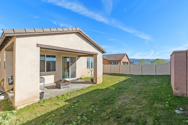 Welcome Home!! Skyborne is one of the newer developments located in Desert Hot Springs. This inviting family-friendly home offers 3 bedrooms and 2 full bathrooms with a thoughtful split-bedroom layout for added privacy. The primary suite is conveniently located on the opposite side of the home, creating a quiet retreat away from the additional bedrooms.The open-concept kitchen flows seamlessly into the dining area and living room, making it ideal for everyday living and family gatherings. The living room overlooks the backyard and opens to a covered patio, providing the perfect space for relaxing, entertaining, or enjoying outdoor time year-round.With a functional layout and comfortable living spaces, this home is designed to fit your lifestyle. Additional highlights include solar panels, helping keep energy expenses low during the summer months, and a cul-de-sac location, offering reduced traffic and a more peaceful setting.
