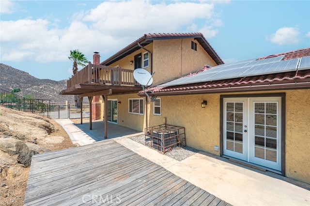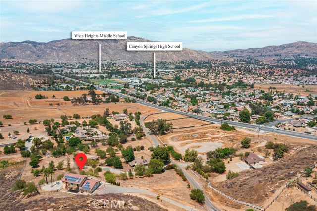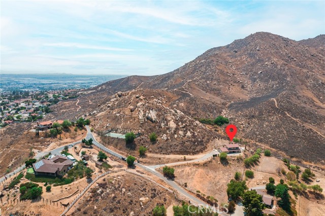 Sitting alone atop a mountain at the end of an extended private driveway, this 4-bedroom retreat delivers unmatched privacy, sweeping mountain views behind, and dazzling 270° city lights in front. Backed by Box Springs Mountain Reserve, the nearly 2-acre property offers complete self-sufficiency with a private well and paid-off solar panels—and no utility bills make off-grid living possible—without sacrificing modern comforts. Inside, warm wood finishes, a stone fireplace, chef’s kitchen, and spacious bedrooms create a cozy, timeless feel. while spacious bedrooms and a separate office add flexibility. The primary suite boasts an oversized terrace perfect for soaking in the stunning vistas. Enjoy space for an ADU, stables, or RV/boat parking. Just 10 minutes from grocery stores, Moreno Valley Mall and all the shopping & dining along the 60 Fwy. Plus, you can jump on I-215 in no time at all, with UC Riverside & downtown Riverside less than 20 minutes from your front door!, this rare mountaintop haven blends off-grid freedom with city convenience—don’t miss it!