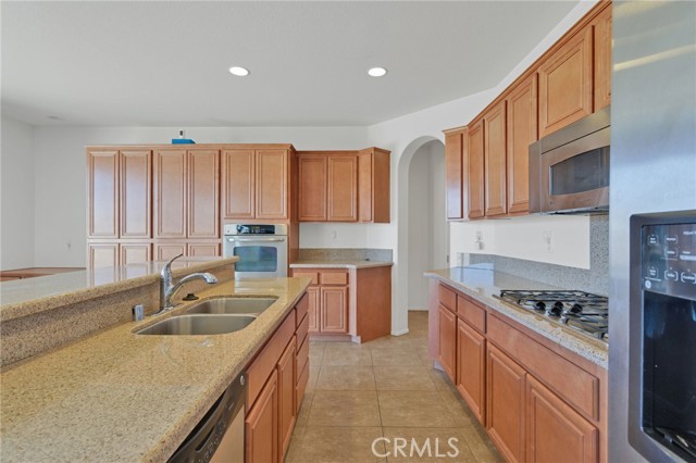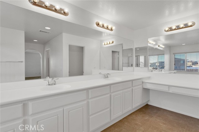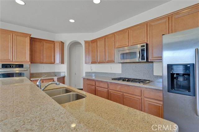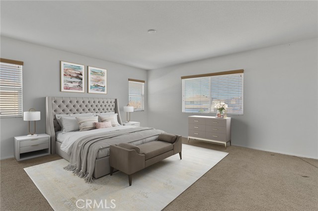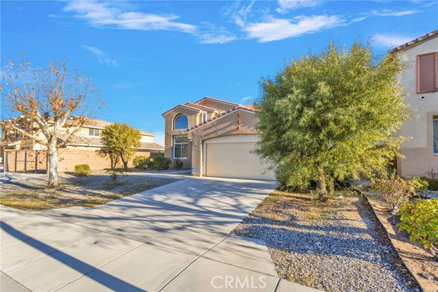 Built in 2009, this Victorville home is well maintained and offers a functional and spacious floor plan. The interior includes a formal living room, a separate dining area, and an open family room connected to the kitchen. The kitchen features granite countertops and a center island. Upstairs, there is a large loft that can be used as additional living space, an office, or a recreation area. The home offers four bedrooms. The primary bedroom includes dual walk-in closets, a soaking tub, and a separate walk-in shower. Additional features include a three-car garage, providing ample parking and storage space. The backyard includes a concrete foundation suitable for a future patio cover and provides ample space for outdoor use. Located in an established residential neighborhood, the property offers convenient access to nearby amenities and local roadways.