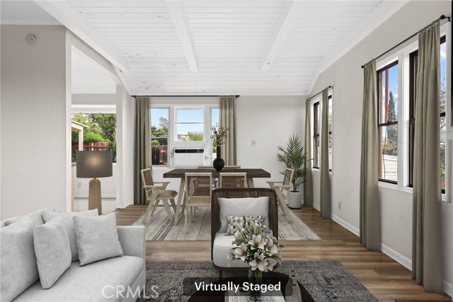 Situated in the desirable Garvanza neighborhood of Los Angeles, bordering Pasadena, this charming two-bedroom, one-bath residence offers sweeping city-light and mountain views along with exceptional potential. The inviting open floor plan features a spacious living room with a classic fireplace and dining area with expansive windows that flood the home with natural light, complemented by warm wood-beamed ceilings. The updated kitchen is equipped with a stove, built-in microwave, soft-close cabinetry, and a picturesque window overlooking a cozy breakfast nook. Two generously sized bedrooms are served by a full hall bathroom. A delightful front patio with brick flooring provides the perfect setting for morning coffee or quiet relaxation. The flat rear yard presents a blank canvas for outdoor entertaining or gardening and includes existing raised garden beds, along with an enclosed back patio offering versatile additional space for a variety of uses. Ideally located near South Pasadena and Northeast Los Angeles, with close proximity to popular local shops and dining, and convenient access to the 110 and 134 freeways. Enjoy seasonal views of Dodger Stadium fireworks from the comfort of your home.
