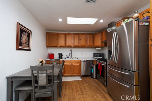 Amazing opportunity to own – spacious 3+2 with fully permitted 2+2 ADU – drive up to the beautifully inviting curb appeal as you make way into the primary home’s spacious living room with vaulted ceilings, custom laminate / wood type flooring and cozy fireplace, step into the formal dining room with custom tile flooring and direct access to rear yard, step into the conveniently distributed recently renovated kitchen with recessed lighting, stone type counter tops and attractive custom backsplash, appliances include stainless steel range / oven, microwave, dishwasher and matching refrigerator, make your way down the hallway and take a glance at the laundry closet with Samsung washer / dryer included, step into the master bedroom with vaulted ceilings, custom laminate flooring, tempered glass slider door with access to back yard, large walk in closet, spacious master bathroom with tile flooring, duo sink counter top, enclosed glass door shower, stroll down the hallway and take a glance at the additional two spacious bedrooms as you make your way to the ADU, step into the spacious kitchen with laminate flooring and plenty of cupboard space, skylight and recessed lighting make this area light and bright, step over to the cozy living room and take a glance at the stackable laundry unit included as you make your way to the two spacious bedrooms and two baths which makes this ADU a perfect addition, before you go, visit the entertainers backyard with sparkling custom pool with spa (child safety fencing included), recent upgrades include retrofitted energy saving windows and sliders, independent HVAC in each section of dwellings, this fine home + ADU is seeking a new homeowner to call it “Home Sweet Home”